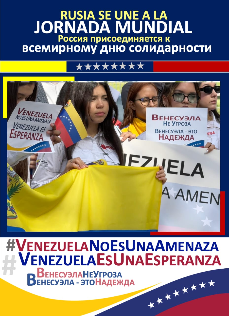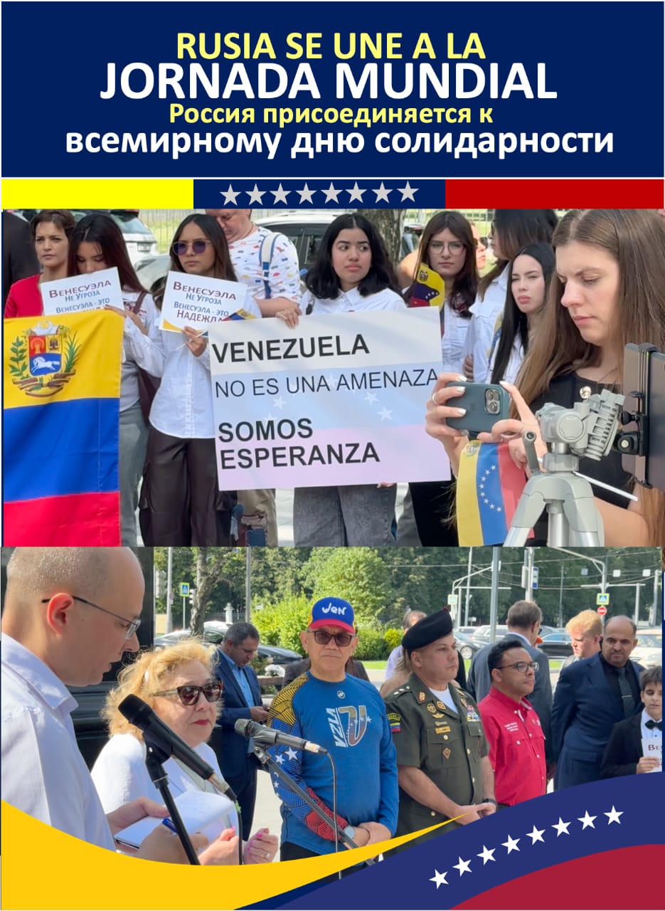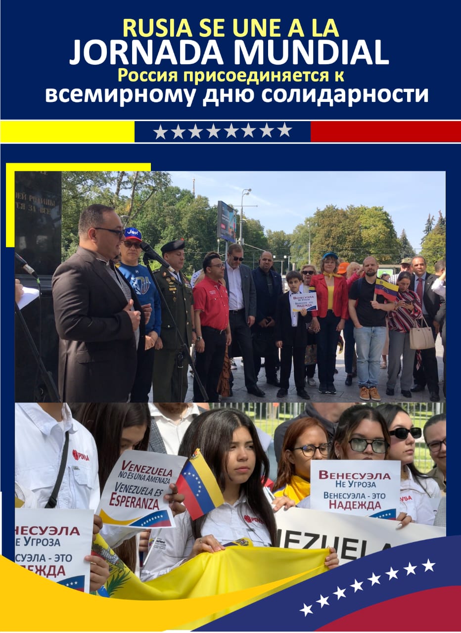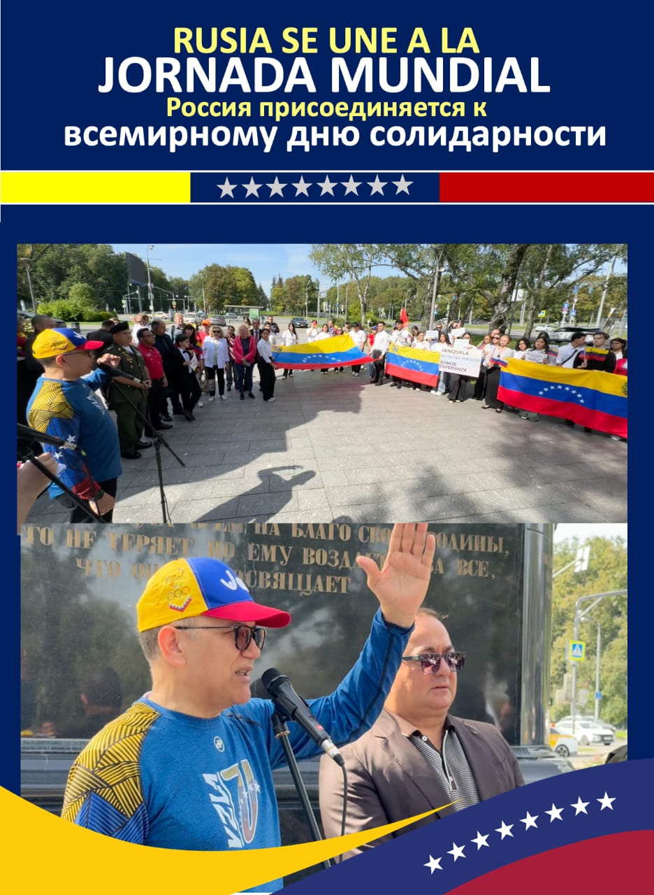 Entre banderas venezolanas y rusas que ondeaban al pie de la estatua del Libertador, el embajador de Venezuela en Rusia, Jesús Salazar Velásquez, agradeció las manifestaciones de apoyo a la paz de Venezuela y de la región de América Latina frente a las amenazas belicistas que se ciernen desde el imperio estadounidense, en una escalada sin precedentes en la historia de la región.