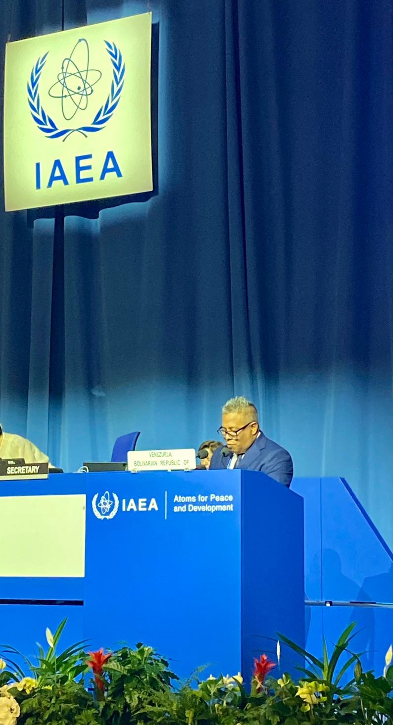 Austria, 16 de septiembre de 2025.- En el marco del Debate General de la Sexagésima Novena Reunión Ordinaria de la Conferencia General del Organismo Internacional de Energía Atómica (OIEA), que se desarrolla en Viena, el jefe de la delegación venezolana, Alberto Quintero, viceministro de Aplicación del Conocimiento Científico del Ministerio del Poder Popular para Ciencia y Tecnología, denunció el reciente despliegue de fuerzas militares estadounidenses en aguas del Mar Caribe, “incluyendo la presencia de un submarino nuclear de ataque rápido, en una escalada directa de acciones hostiles y amenazas contra Venezuela y la paz regional, siendo la primera ocasión en que se introduce un activo de esta naturaleza en Nuestra América, lo que constituye una gravísima amenaza para la estabilidad hemisférica”.