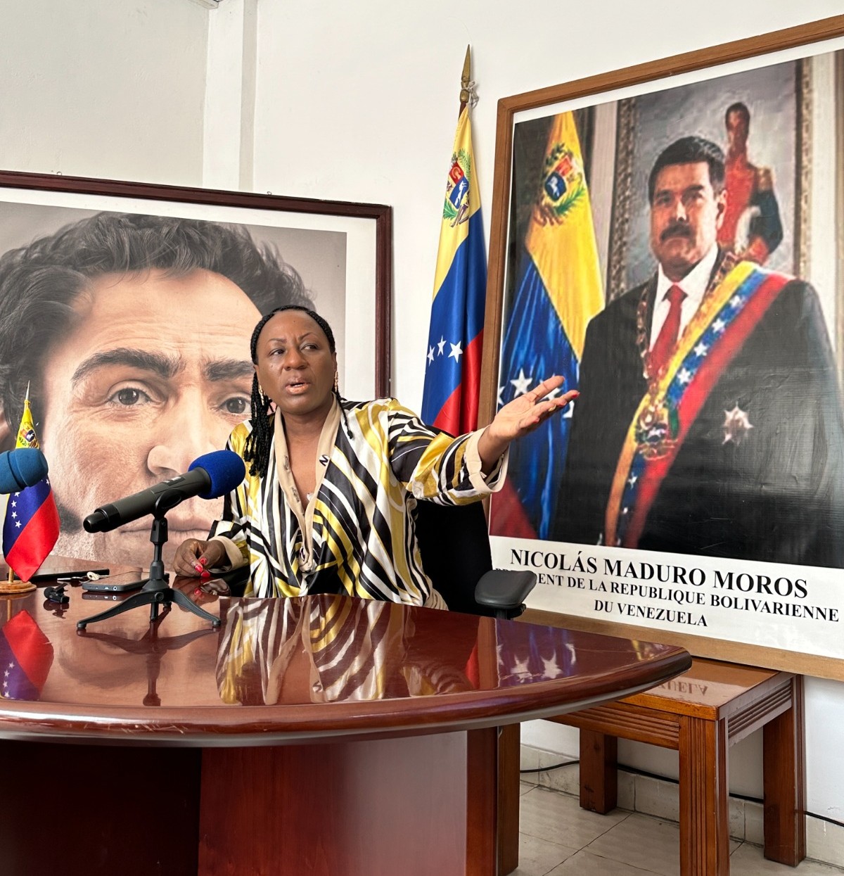 La embajadora Laura Suárez sostuvo una conferencia de prensa ante medios de comunicación del Congo (radio, TV y prensa escrita), en la cual expuso la amenaza que representa para la paz de la región el despliegue militar de EEUU en el Caribe, resaltando que se crea una narrativa contra Venezuela para justificar una intervención militar y robar sus recursos naturales.