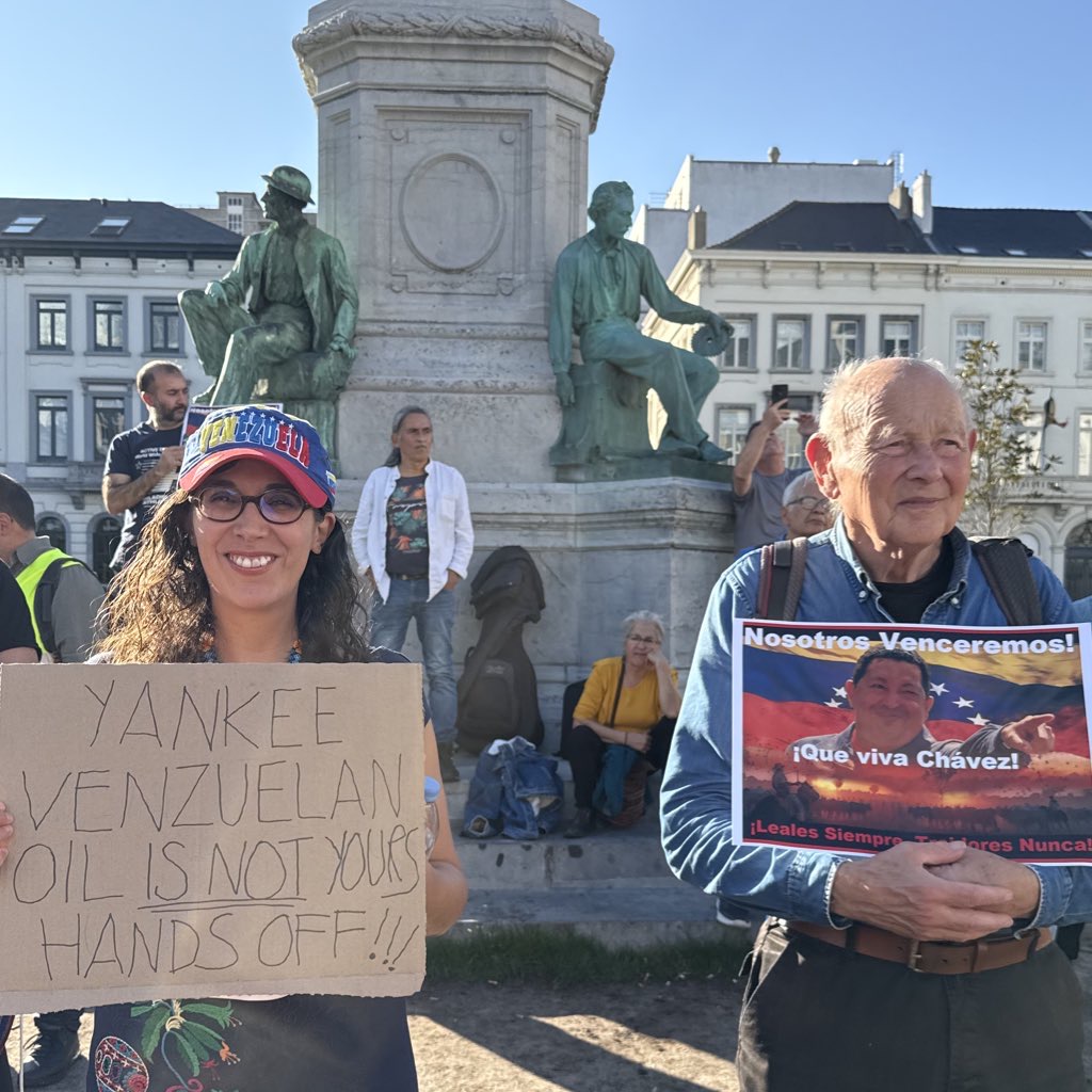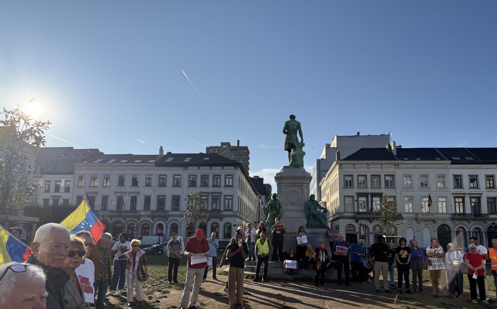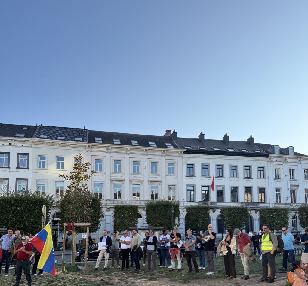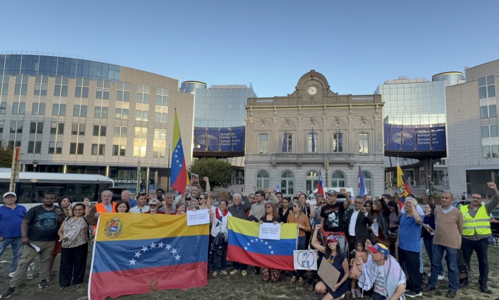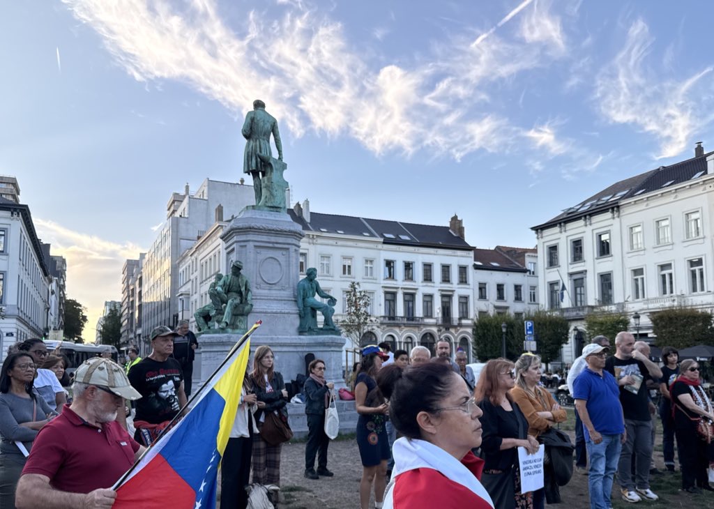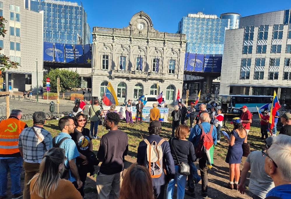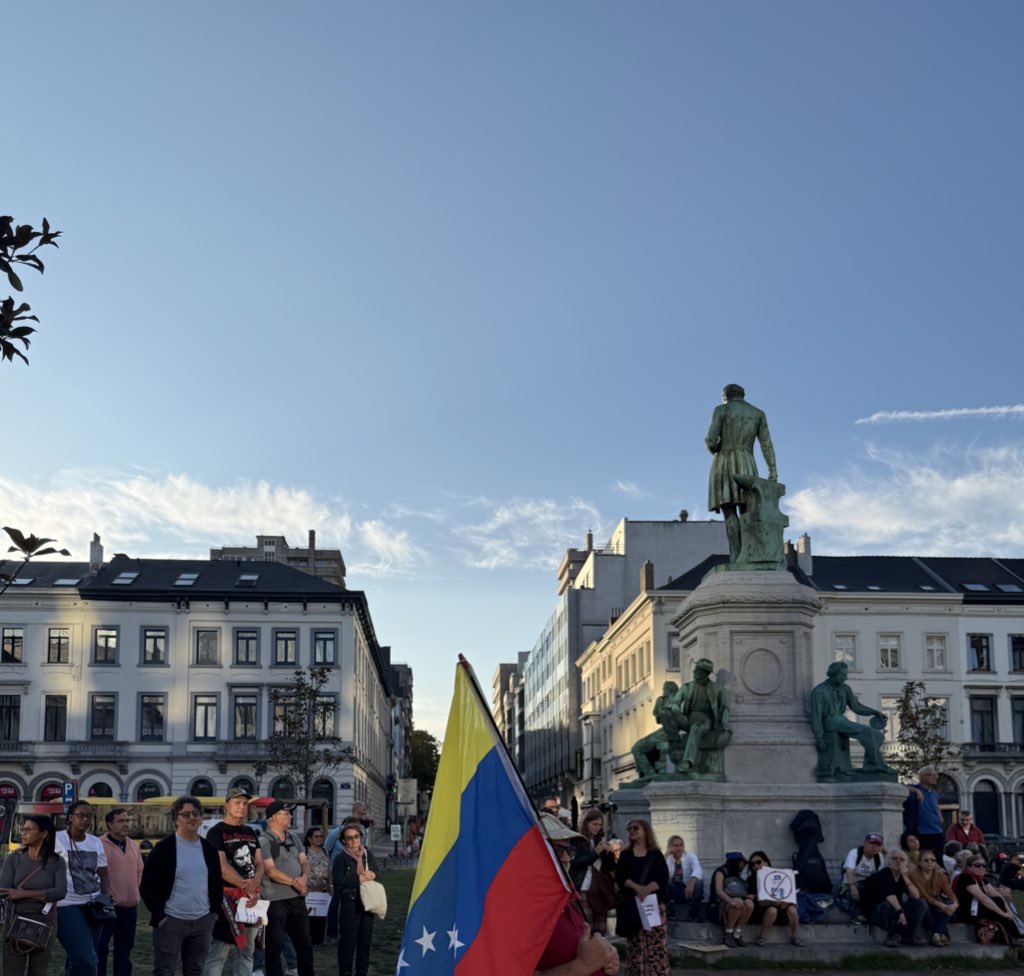 Bruselas, 19 de septiembre de 2025.- En la tarde de este viernes se realizó en Bruselas, Bélgica, una concentración pública para rechazar la amenaza militar del imperialismo estadounidense contra Venezuela y respaldar al Gobierno Bolivariano y al Presidente Nicolás Maduro.
