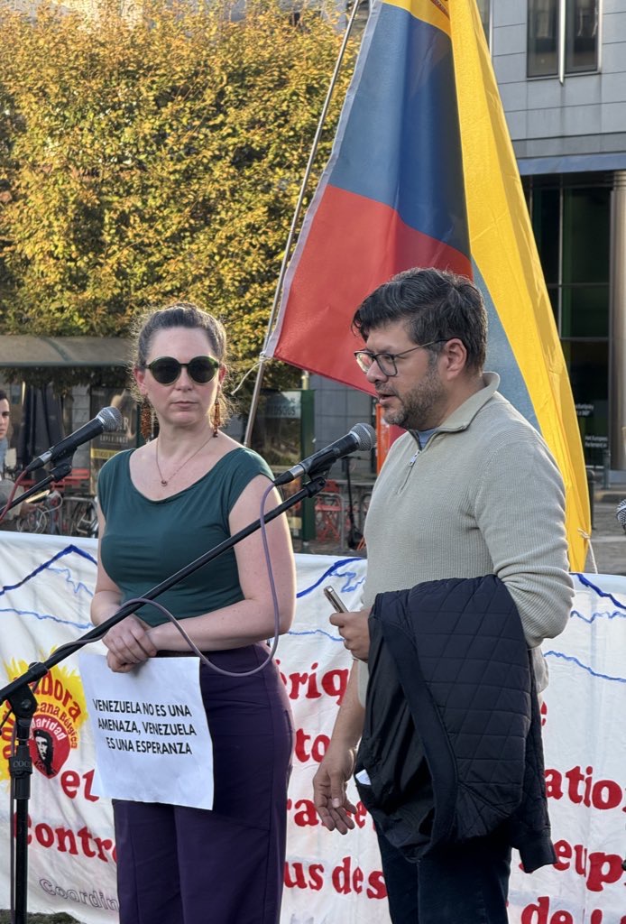 En la concentración tomó la palabra el embajador Jorge Valero, jefe de la Misión de la República Bolivariana de Venezuela ante la Unión Europea (UE), quien agradeció –en nombre del Presidente Maduro y el canciller Yván Gil– la solidaridad inquebrantable de movimientos sociales belgas con el pueblo venezolano y su Gobierno Bolivariano.