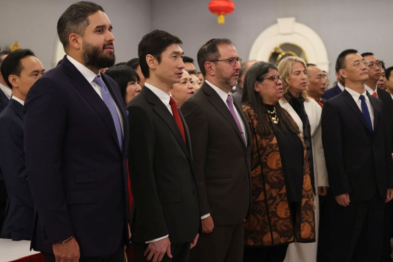 El ministro del Poder Popular para Relaciones Exteriores, Yván Gil, acompañó este martes al embajador de la República Popular China acreditado en Caracas, Lan Hu, en la recepción con motivo del 76.° aniversario de la fundación de este país asiático, decretada el 1 de octubre de 1949.