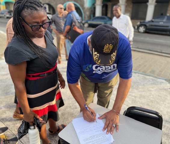 Kingstown, 24 de septiembre de 2025.- Movimientos y organizaciones sociales de San Vicente y las Granadinas (SVG), así como ciudadanos venezolanos y cubanos, tomaron la principal avenida de la capital Kingstown y realizaron una jornada de solidaridad con el pueblo venezolano y recolección de firmas en rechazo a la presencia amenazante de fuerzas militares de los Estados Unidos (EEUU) en el Mar Caribe.