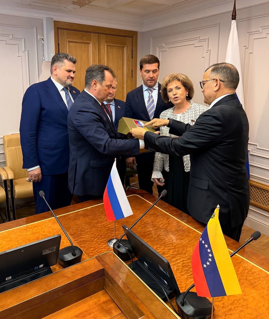 Moscú, 23 de septiembre de 2025.- El embajador de la República Bolivariana de Venezuela, Jesús Salazar Velásquez, sostuvo una reunión con senadores del Grupo de Amistad del Consejo de la Federación de Rusia, en cuyo marco se conversó sobre las relaciones bilaterales entre ambos países y se intercambió información sobre el país suramericano y la actual situación de amenazas a su soberanía y a la paz de la región.