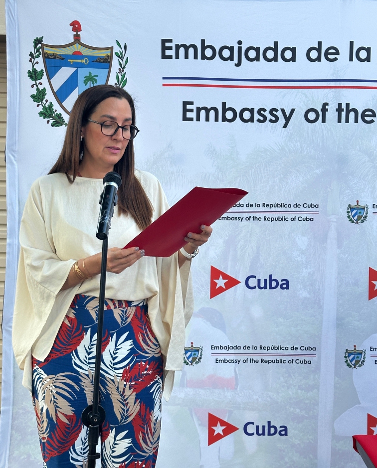 La jefa de Misión concluyó evocando las palabras de Fidel Castro y Simón Bolívar, subrayando que la solidaridad es una práctica revolucionaria y que la unidad de los pueblos es un mandato histórico.