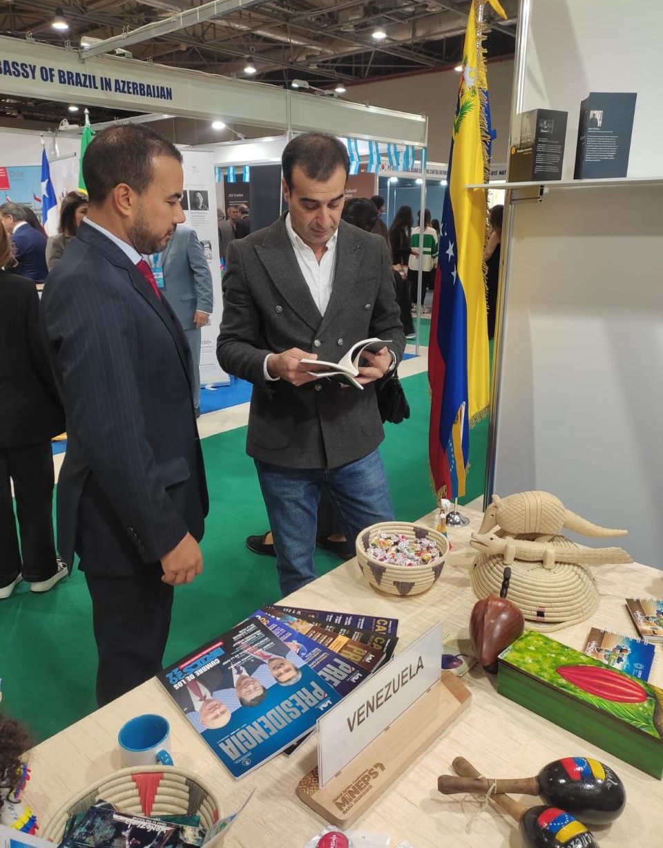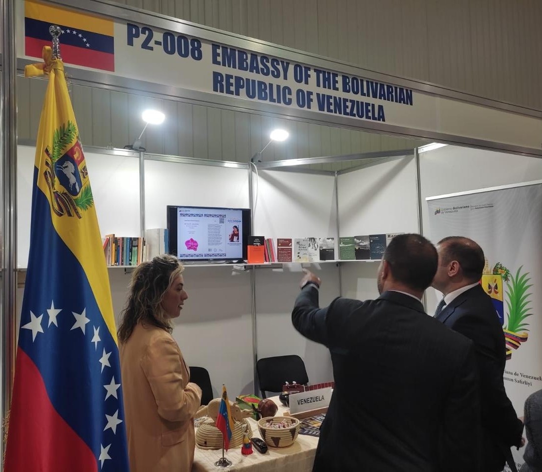 Bakú, 7 de octubre de 2025.- En atención a la invitación del Ministerio de Cultura de la República de Azerbaiyán, la República Bolivariana de Venezuela participó en la 11a Feria Internacional del Libro de Azerbaiyán, consolidando su compromiso, a través de la Diplomacia Bolivariana de Paz, con el desarrollo del ámbito cultural y el intercambio académico entre ambas naciones.