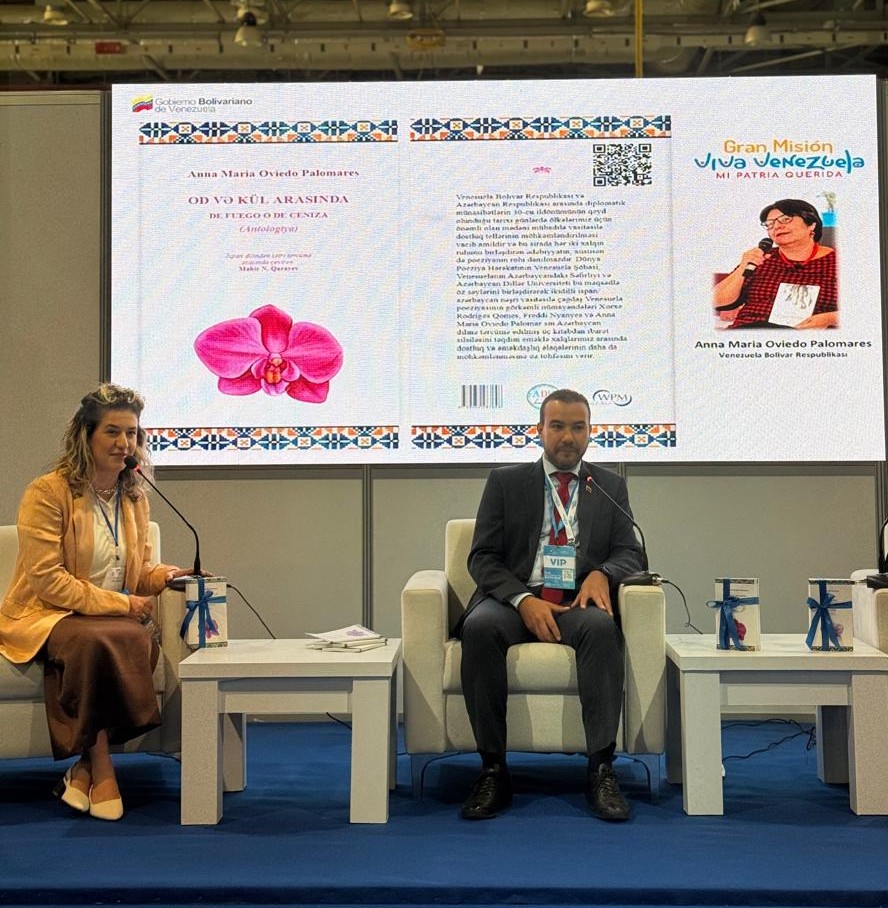 Durante la feria se desarrollaron actividades de promoción de la lectura y presentaciones de libros de destacados escritores venezolanos; en esta ocasión, del escritor y poeta Jorge Rodríguez Gómez, con su obra “Río quemado; Freddy Ñáñez, con su obra “Casa ajena”, y Ana María Oviedo Palomares, con su obra “De fuego y de ceniza”, traducidos a la lengua azerbaiyana, en el marco de un proyecto desarrollado con estudiantes, profesores y poetas de la Universidad de Lenguas de Azerbaiyán y escritores venezolanos, resaltando el valor de la literatura como puente para el entendimiento entre los pueblos.