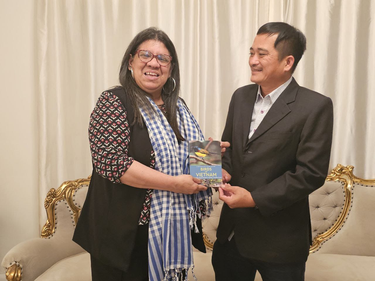 Caracas, 8 de octubre de 2025.- A fin de fortalecer los lazos de cooperación científica y académica entre la República Bolivariana de Venezuela y la República Socialista de Vietnam, la viceministra para Asia, Medio Oriente y Oceanía del Ministerio del Poder Popular para Relaciones Exteriores, Tatiana Pugh, sostuvo un cordial encuentro con el ornitólogo Nguyen Hoai Bao, fundador de Wildtour, una unidad pionera y líder con amplia experiencia en el campo de la observación de aves, y con Le Manh Hung, investigador principal del Instituto de Biología de la Academia de Ciencias y Tecnología de Vietnam.