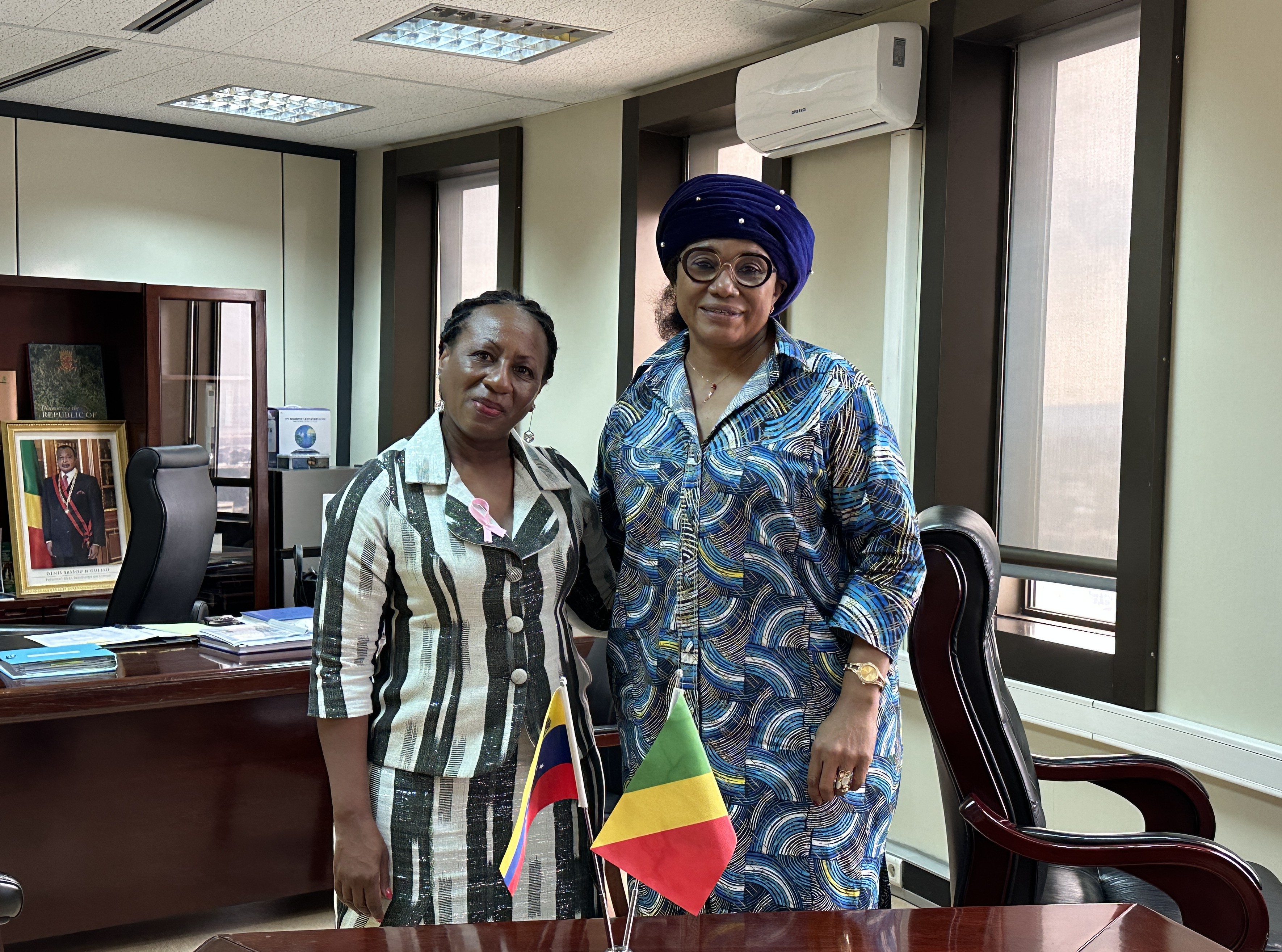 En el marco del Congreso Mundial en Defensa de la Madre Tierra, realizado en Caracas, la embajadora de la República Bolivariana de Venezuela ante la República del Congo, Laura Evangelia Suárez, sostuvo una reunión con la ministra de Economía Forestal de esta nación, Rosalie Matondo, con quien abordó la organización del evento en Caracas, así como la activación del instrumento suscrito en la materia y las perspectivas de trabajo conjunto.