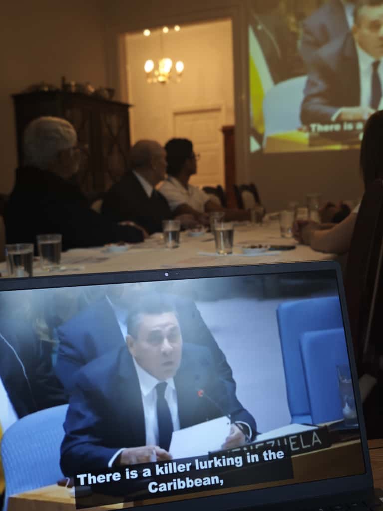Budapest, 17 de octubre de 2025.- La Embajada de la República Bolivariana de Venezuela en Hungría realizó un evento político para denunciar y alertar sobre la escalada de agresiones perpetradas por el gobierno de los Estados Unidos (EEUU) en el mar Caribe y que amenaza gravemente la seguridad del territorio venezolano.