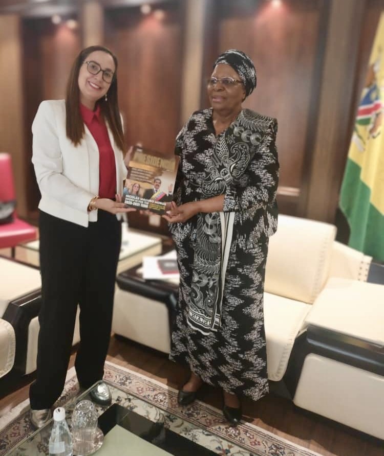 Windhoek, Namibia.- La embajadora de la República Bolivariana de Venezuela, Magaly Henríquez, sostuvo una reunión oficial con la Presidenta de la República de Namibia, Netumbo Nandi-Ndaitwah, con el objetivo de entregar una carta oficial enviada por el Presidente Nicolás Maduro Moros y abordar la situación política y geopolítica que enfrenta su país.