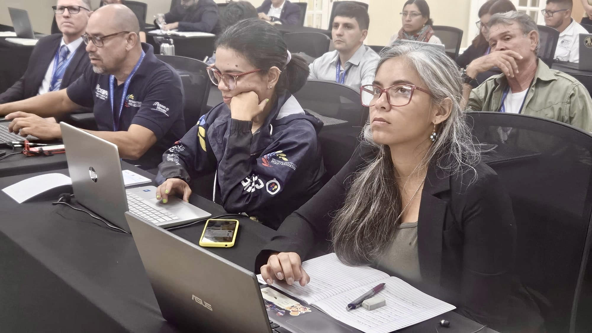 La delegación estuvo integrada por los biólogos Andrea Renata Rodríguez y Alexis Miguel Bellorín Romero, pertenecientes al Centro Nacional de Investigación de Pesca y Acuicultura (CENIPA), institución adscrita al Ministerio del Poder Popular de Pesca y Acuicultura. A este grupo de expertos se sumó la geoquímica Yumimar Cristina de Araújo Tirado, del Laboratorio de Física Nuclear de la Universidad Simón Bolívar.