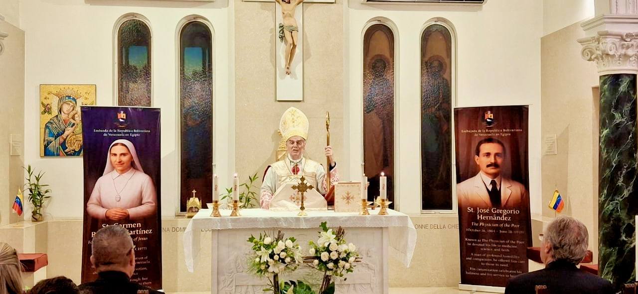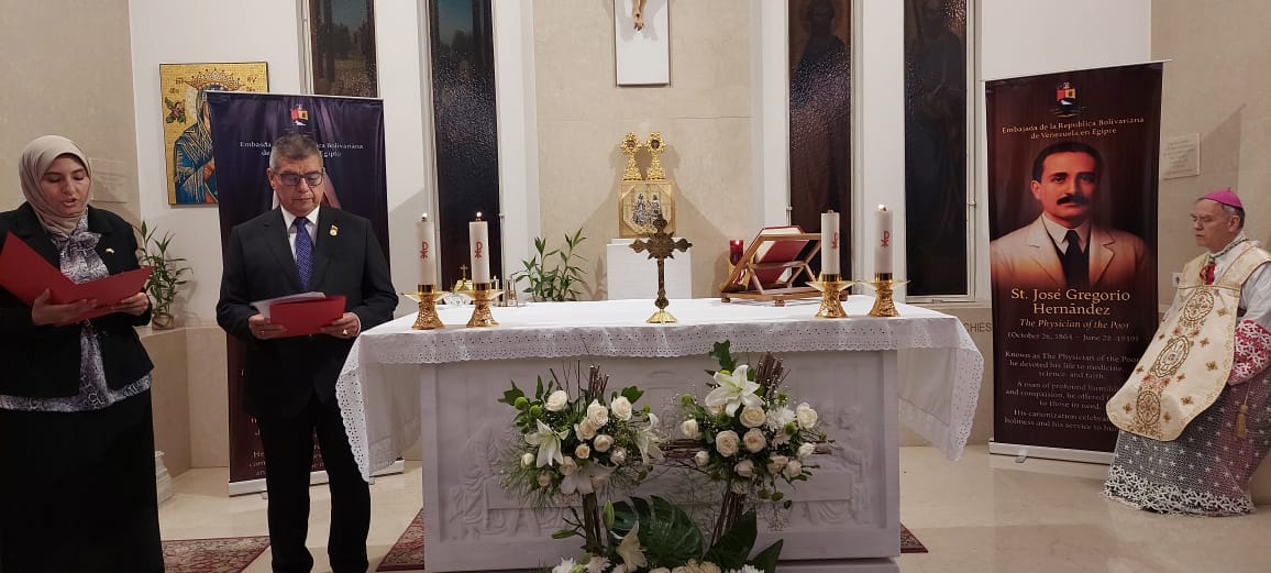 El Cairo, 23 de octubre de 2025.- Colmados de orgullo patrio, la Embajada de Venezuela en Egipto se unió al júbilo nacional que embarga a todo el pueblo venezolano por la histórica canonización del doctor José Gregorio Hernández y la madre Carmen Rendiles, los primeros santos del país suramericano, hecho de elevada espiritualidad que honra la fe viva del pueblo bolivariano.