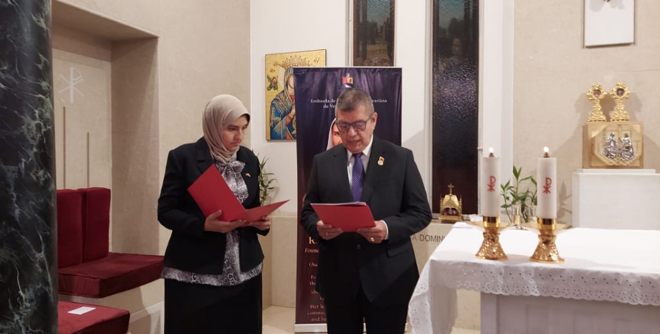 En sus palabras, el diplomático destacó que el Dr. José Gregorio Hernández, "el médico de los pobres", como es conocido por todos los venezolanos, y la madre Carmen Rendiles, servidora infatigable del Evangelio, son reflejo de las virtudes más nobles de la identidad venezolana, que se enmarca en la humildad, trabajo, compasión, solidaridad y amor al prójimo.