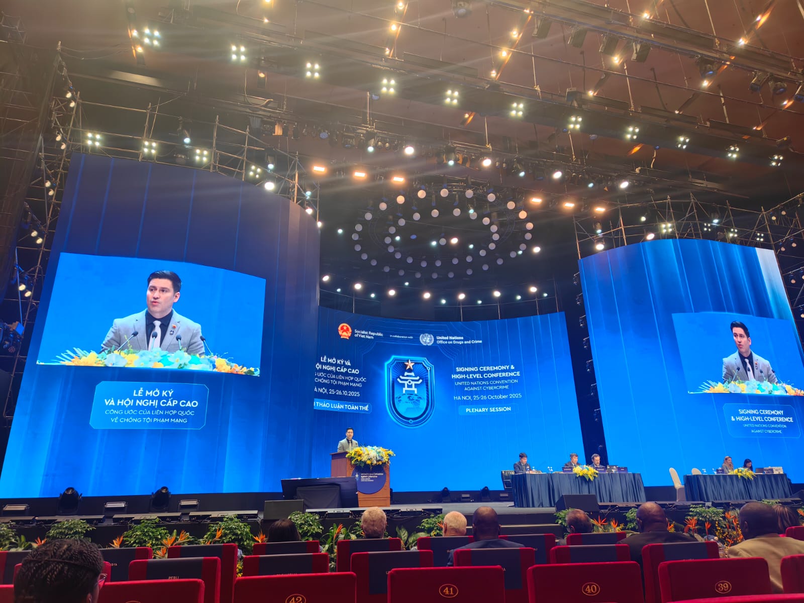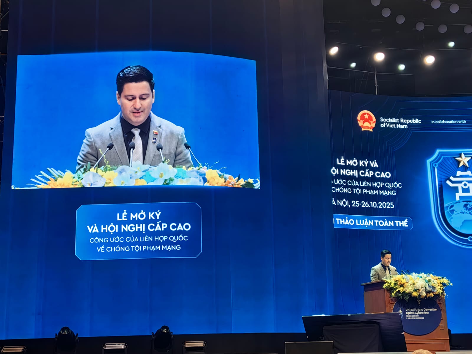Hanói, 25 de octubre de 2025.– En el marco de la firma de la Convención de las Naciones Unidas contra la Ciberdelincuencia celebrada en Hanói, República Socialista de Vietnam, el viceministro para el Desarrollo de las Tecnologías de la Información y la Comunicación del Ministerio del Poder Popular para Ciencia y Tecnología, Raúl Hernández, destacó en su discurso la urgencia de un marco legal universal que proteja a todas las naciones, especialmente a los países del Sur Global, que enfrentan un impacto desproporcionado de estos delitos.