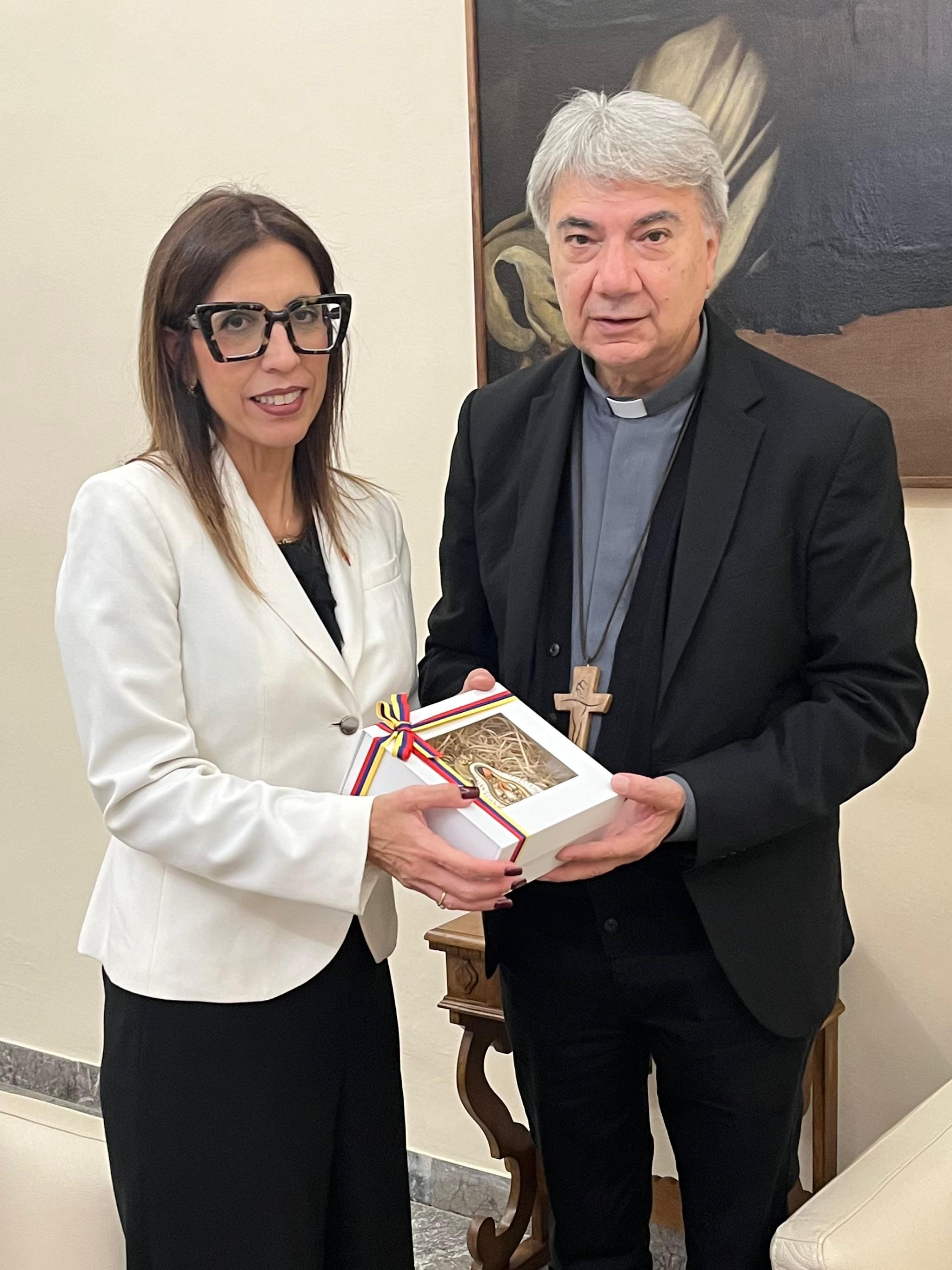 La cónsul general de la República Bolivariana de Venezuela en Nápoles (Italia), Esquía Rubín, sostuvo un fraternal encuentro con el cardenal Don Mimmo Battaglia, también arzobispo de la ciudad metropolitana.