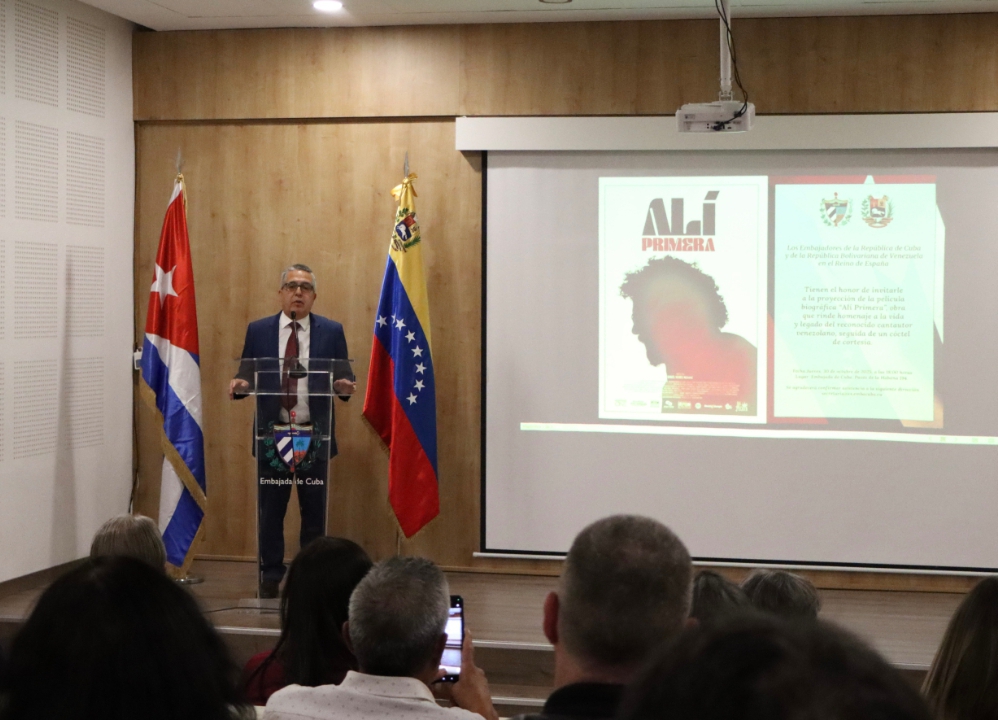 Madrid, 30 de octubre de 2025.- En las instalaciones de la Embajada de Cuba en España se proyectó este jueves el filme venezolano “Alí”, del director Daniel Yegres, postulada por Venezuela a la carrera por el premio Óscar a la Mejor Película Extranjera.