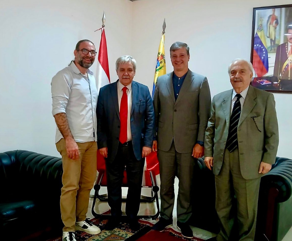 La comitiva fue recibida por el embajador José Gregorio Biomorgi, en un encuentro que sirvió para fortalecer los lazos de solidaridad y compartir visiones del acontecer regional y mundial.