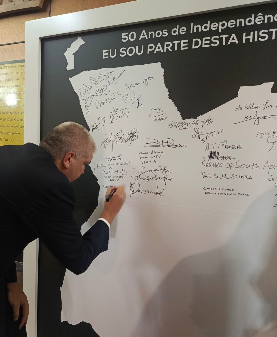 A su llegada al Memorial, el viceministro Pimentel fue recibido por el ministro de Relaciones Exteriores, embajador Téte António, a quien transmitió el especial saludo del presidente Maduro. La ocasión fue propicia para hacer llegar la misiva a su homólogo, en la que enaltece el legado del Dr. Agostinho Neto, quien con profundo amor por su patria guio a su pueblo en la construcción de una nación grandiosa y pujante, ejemplo de dignidad y determinación para los pueblos del Sur Global.
