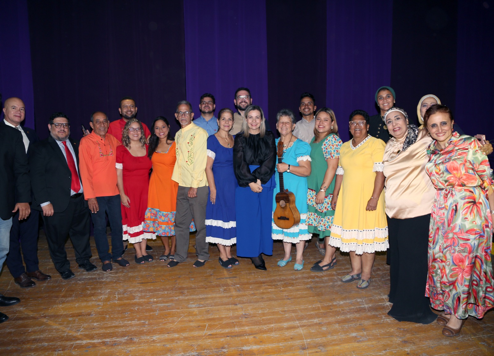 El Cairo, 16 de noviembre de 2025.- En el marco de los actos conmemorativos del 75.º Aniversario del Establecimiento de Relaciones Diplomáticas entre la República Bolivariana de Venezuela y la República Árabe de Egipto, los emblemáticos grupos "Voces Risueñas de Carayaca" y "Reda" ofrecieron una noche cultural inolvidable, en el Teatro El Samer de El Cairo.