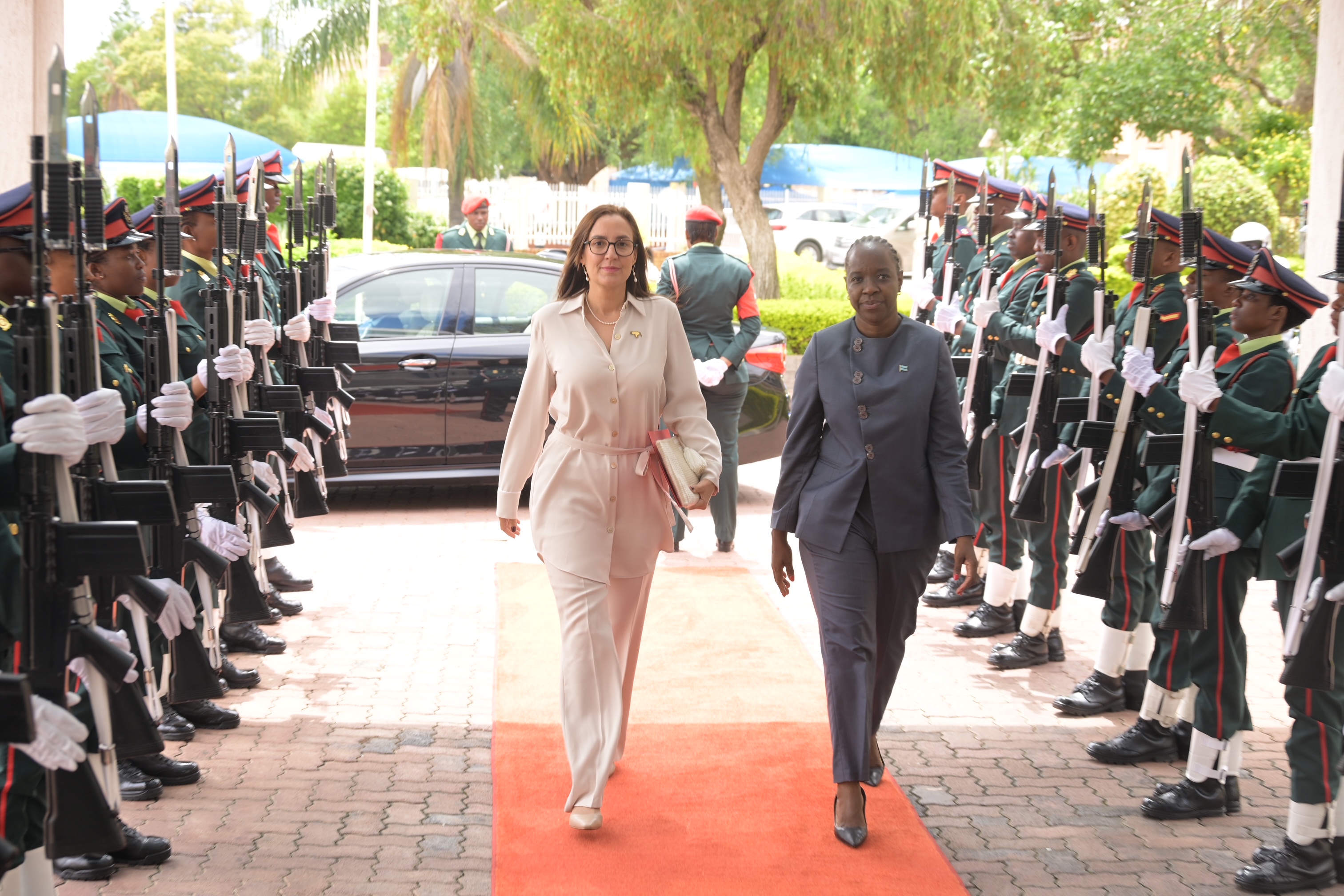 Además, subrayó la relación fraterna con Namibia —país en el que Henríquez está acreditada y reside— y celebró el próximo establecimiento de vuelos directos entre Windhoek y Gaborone, lo cual facilitará la movilidad de la embajadora y permitirá una interacción diplomática más fluida y constante.
