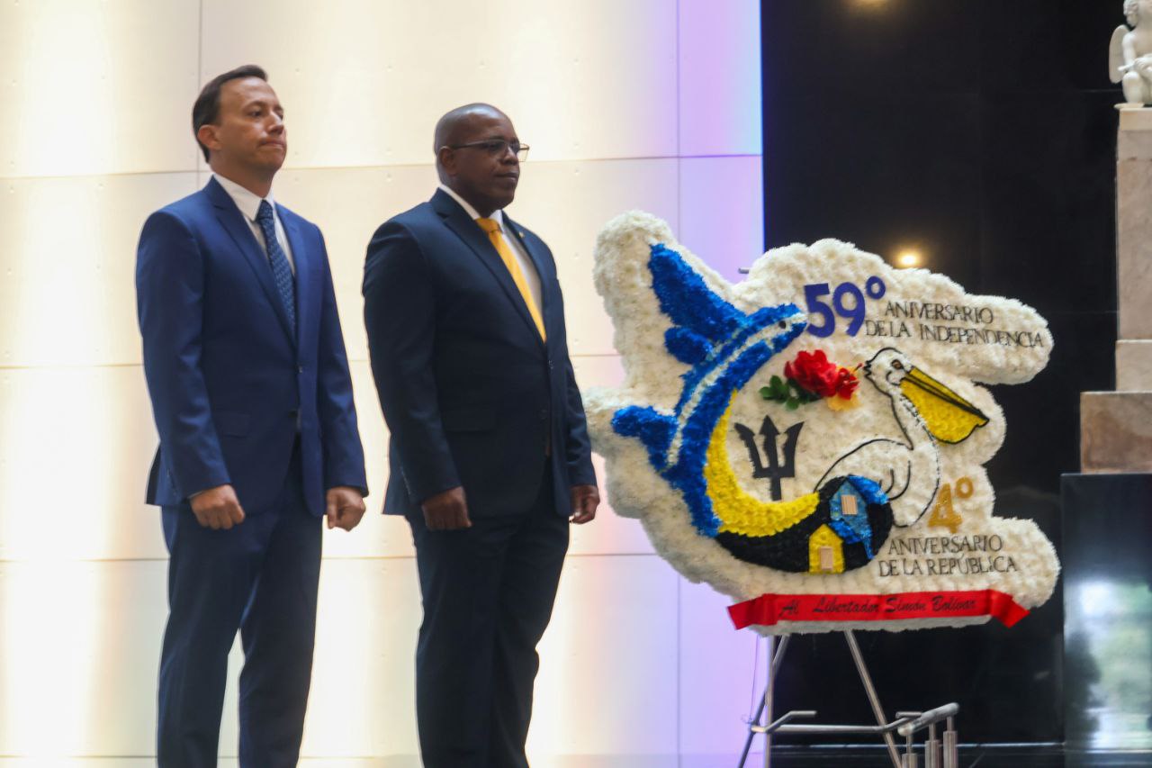 El viceministro para el Caribe del Ministerio del Poder Popular para Relaciones Exteriores de la República Bolivariana de Venezuela, Raúl Li Causi, acompañó este jueves al embajador de la República de Barbados acreditado en Caracas, Aquinas J. Clarke, en la ceremonia de ofrenda floral al Libertador Simón Bolívar en el Panteón Nacional, con motivo del 59 aniversario de la independencia y el cuarto año como República de la nación caribeña.