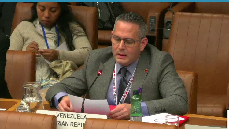 Austria, 5 de diciembre de 2025.- En el marco de la continuación del 68º periodo de sesiones de la Comisión de Estupefacientes de la Organización de las Naciones Unidas (ONU), celebrado en Viena, Austria, la representante permanente de la República Bolivariana de Venezuela, embajadora Claudia Salerno Caldera, acompañada del ministro consejero Gustavo Villarroel Valdez, denunció con firmeza las ejecuciones extrajudiciales perpetradas por el gobierno de los Estados Unidos de América (EEUU) en el Mar Caribe y en el océano Pacífico oriental, frente a las costas de Suramérica, como consecuencia de los más de 20 “ataques cinéticos letales” de las fuerzas armadas estadounidenses, realizados bajo el pretexto del combate contra el tráfico ilícito de drogas.