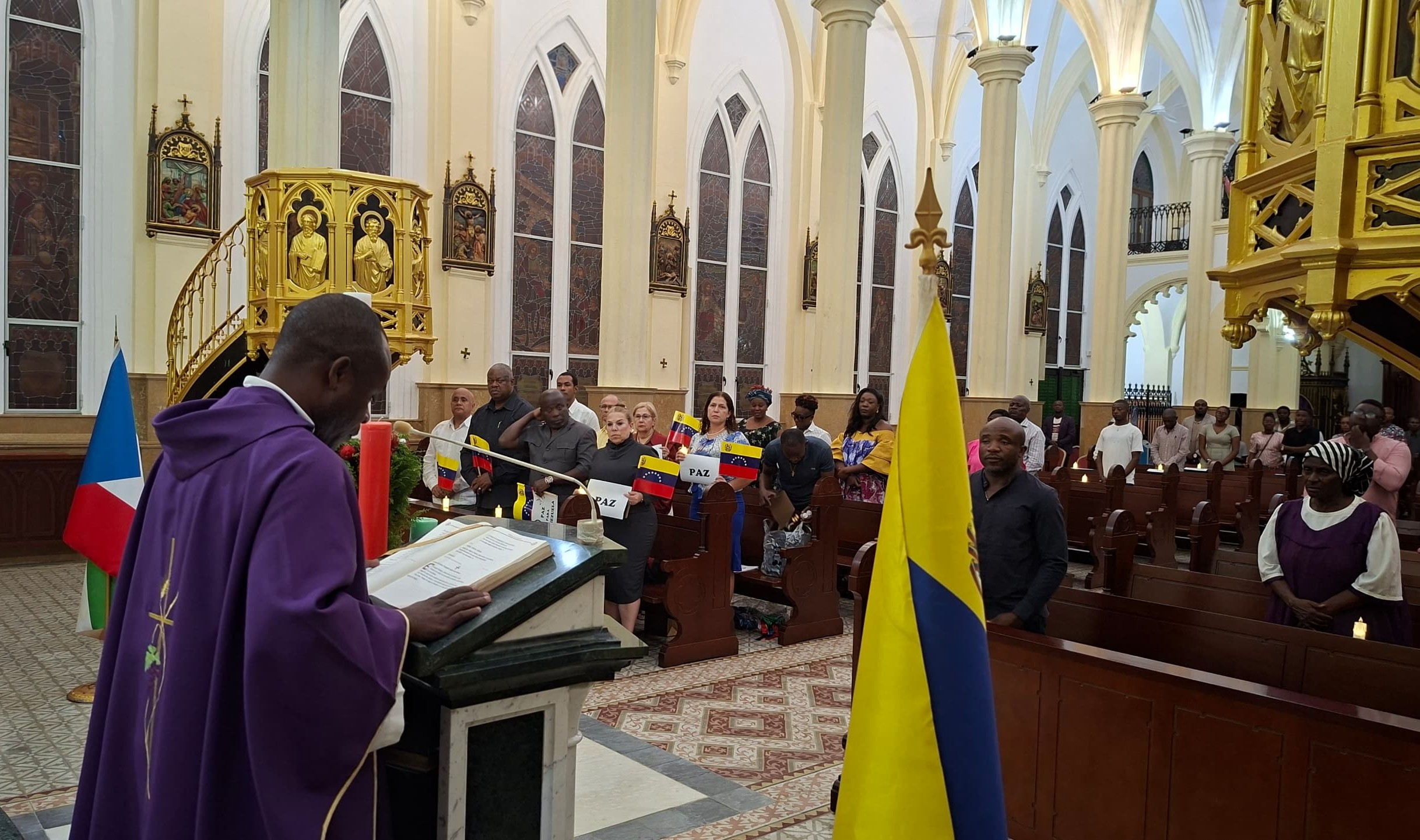 Malabo, 10 de diciembre de 2025.- En rechazo a las amenazas de guerra y por la paz de Venezuela, América Latina y el Caribe, la Embajada de Venezuela en Guinea Ecuatorial organizó una misa en la Catedral de Malabo.