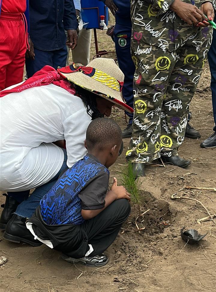 Posteriormente, los diplomáticos venezolanos, la ministra congoleña, el director general y los estudiantes del liceo, acompañados de funcionarios del ministerio, empleados locales y allegados de la Misión Diplomática, realizaron la siembra de 1.143 arbolitos de pinos en una hectárea, en un espacio destinado a las siembras de la Misión Diplomática venezolana.