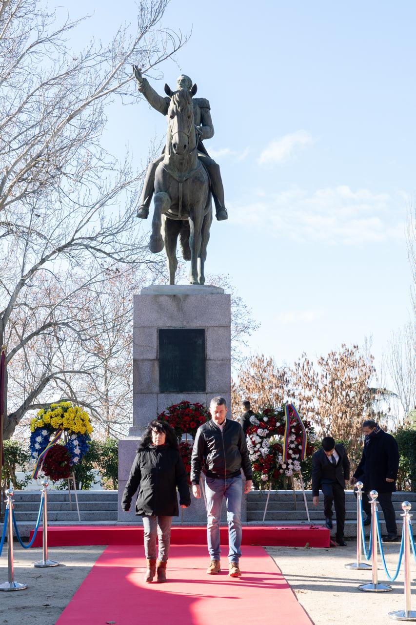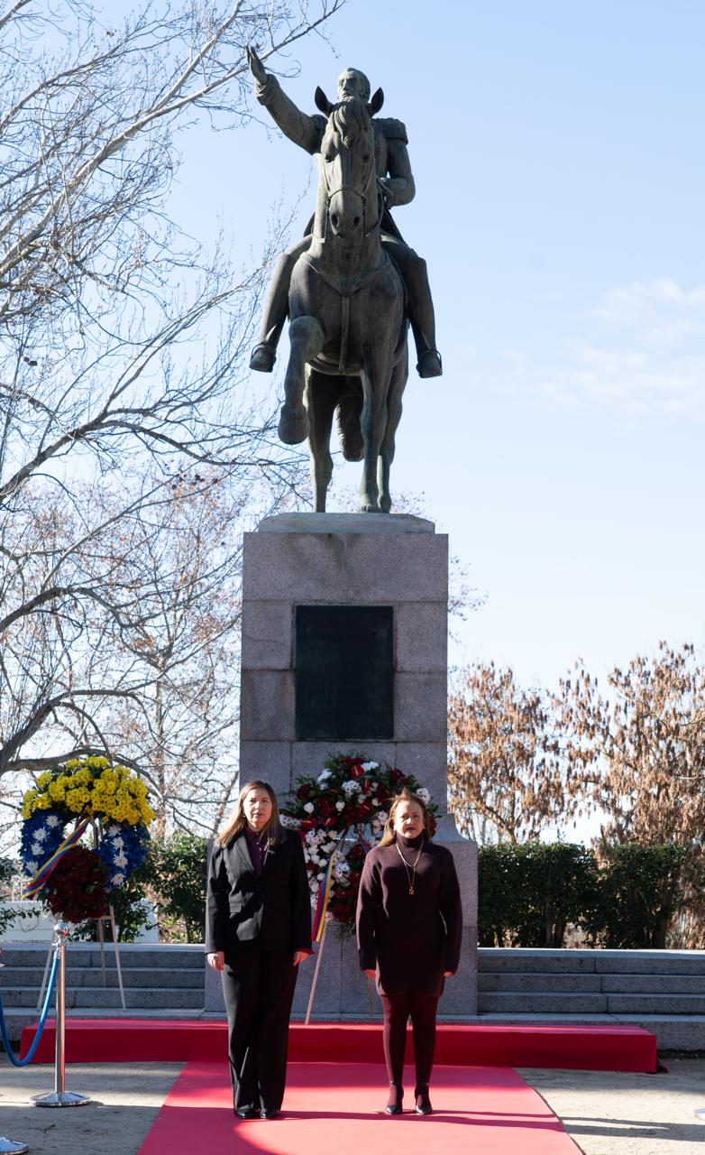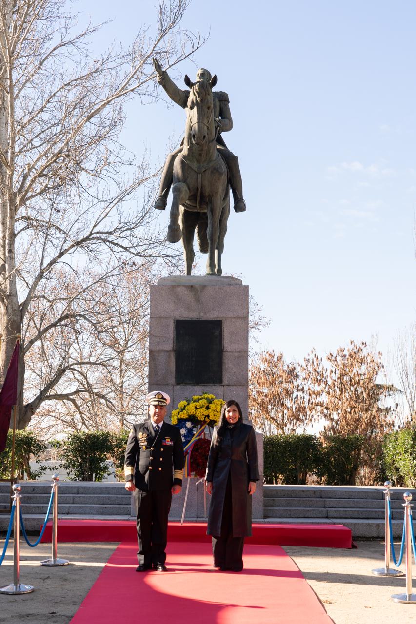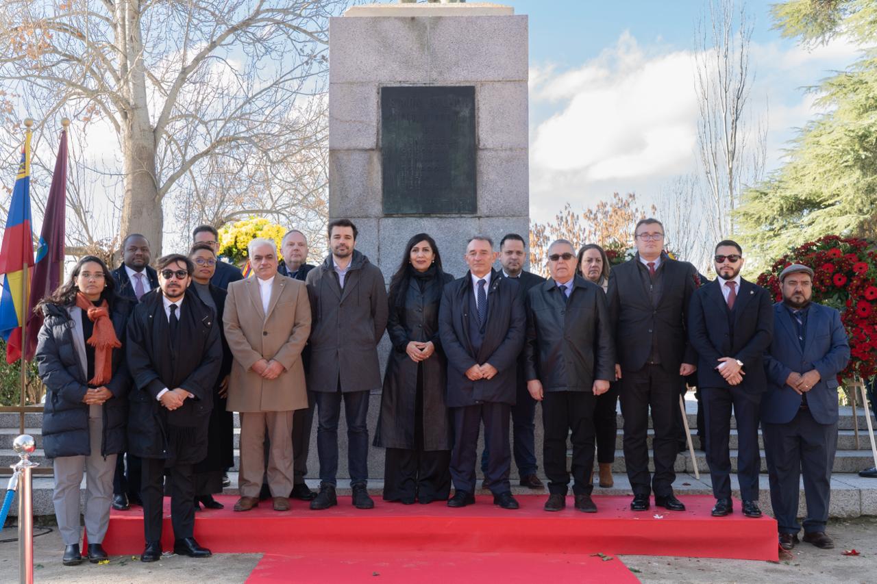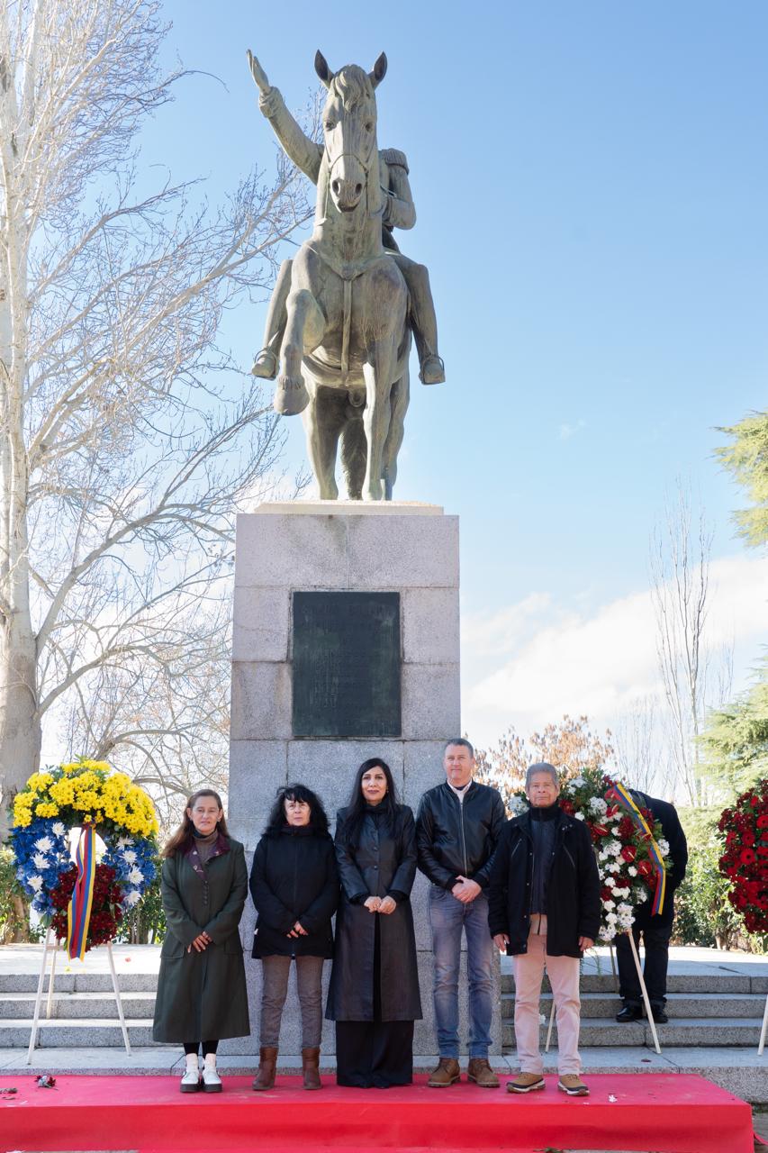 Madrid, 17 de diciembre de 2025.- Con una solemne ceremonia de ofrenda floral ante la estatua ecuestre de Simón Bolívar, ubicada en el Parque del Oeste de Madrid, se conmemoraron los 195 años del paso a la inmortalidad del Libertador venezolano, quien lideró la independencia de cinco naciones suramericanas: Bolivia, Colombia, Ecuador, Perú y Venezuela.