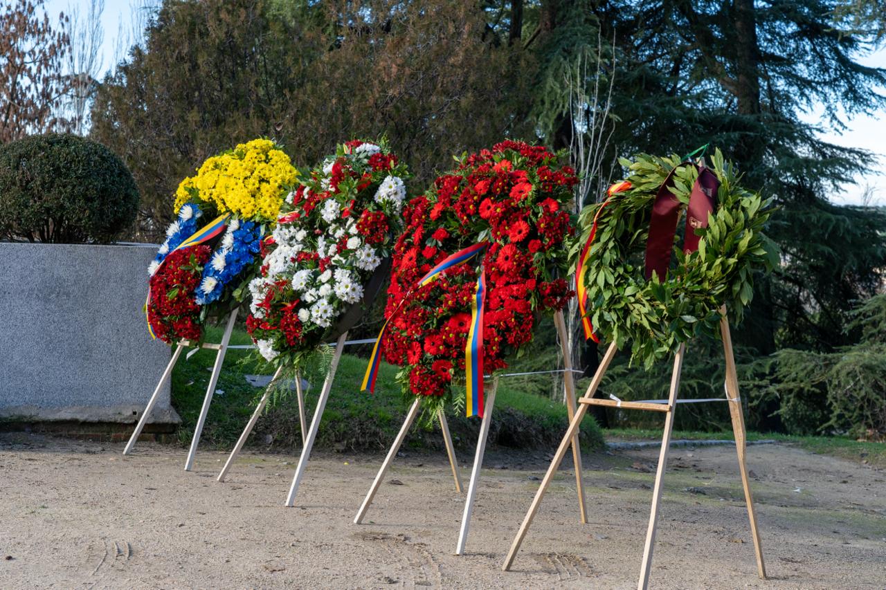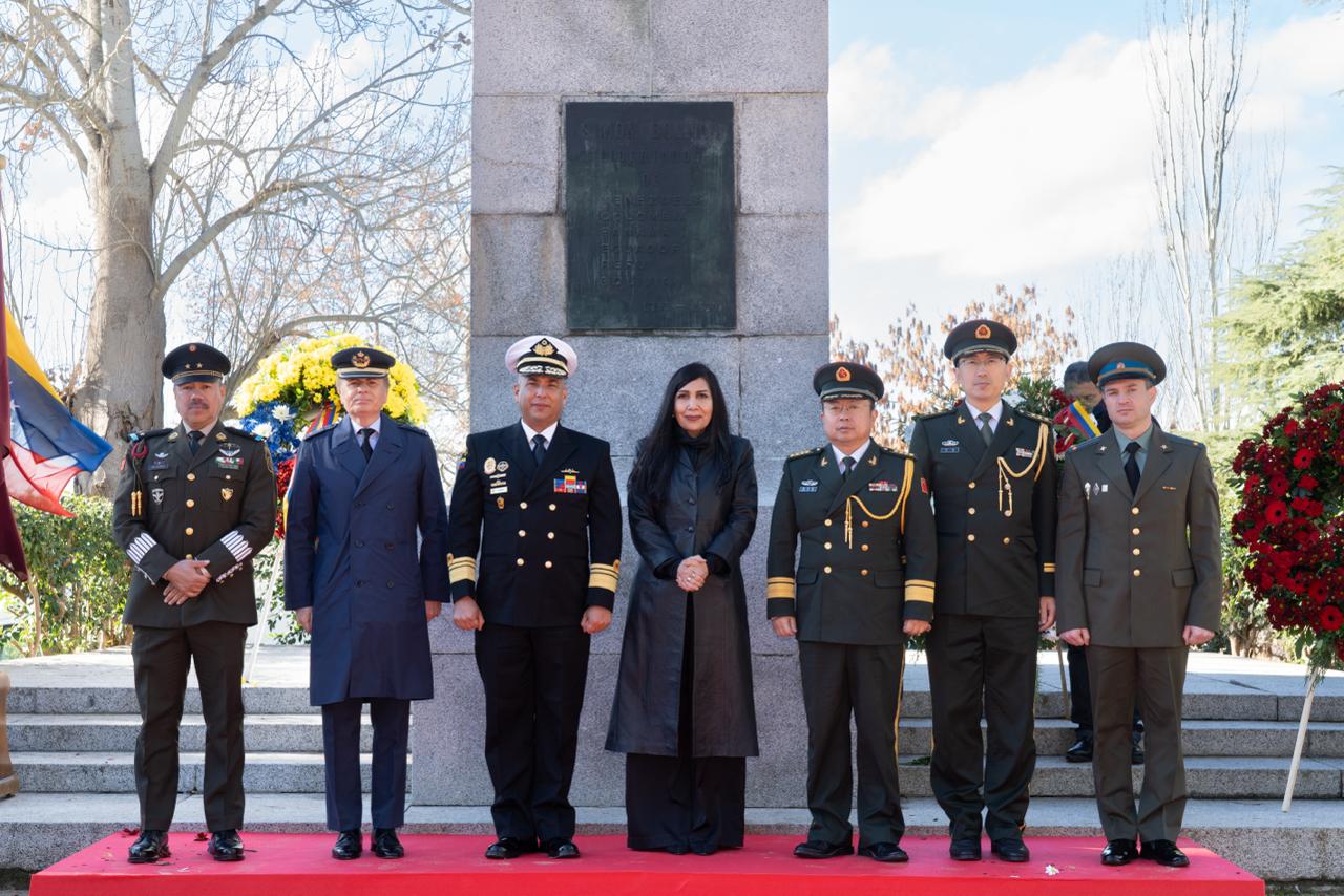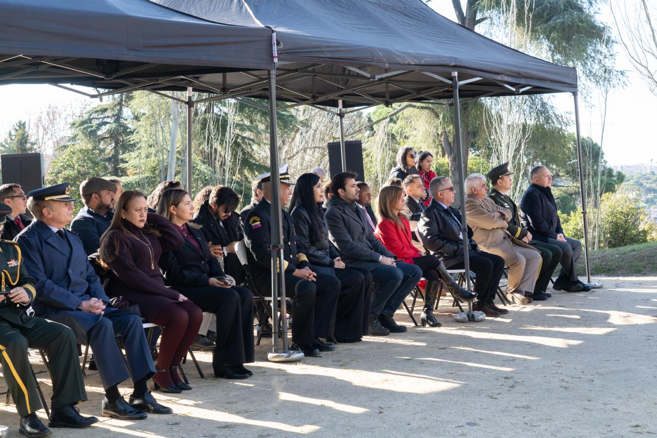 La primera de ellas, por parte la embajadora Gladys Gutiérrez Alvarado y el vicealmirante Agustín Fernández, encargado de la Agregaduría de Defensa de Venezuela. La segunda ofrenda fue realizada por la cónsul general de Venezuela en Madrid, Nancy Lira Ochoa, acompañada por la cónsul Franna Ortega Sánchez y, para finalizar, en representación de la Internacional Antifascista, capítulo Madrid, y la Solidaridad con Venezuela, ofrendaron Araceli Escudero y René Otaduy.