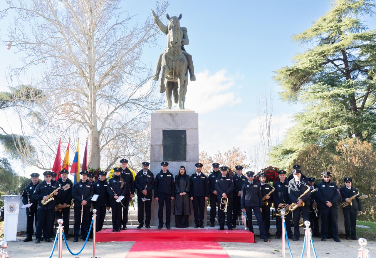 La interpretación de los Himnos Nacionales de Venezuela y España estuvo a cargo de la Banda de Música de la Polícia Nacional de Madrid, dirigida por Ángel Fernández, cuyos músicos acompañaron la colocación de las ofrendas florales ante el monumento al Padre de la Patria.