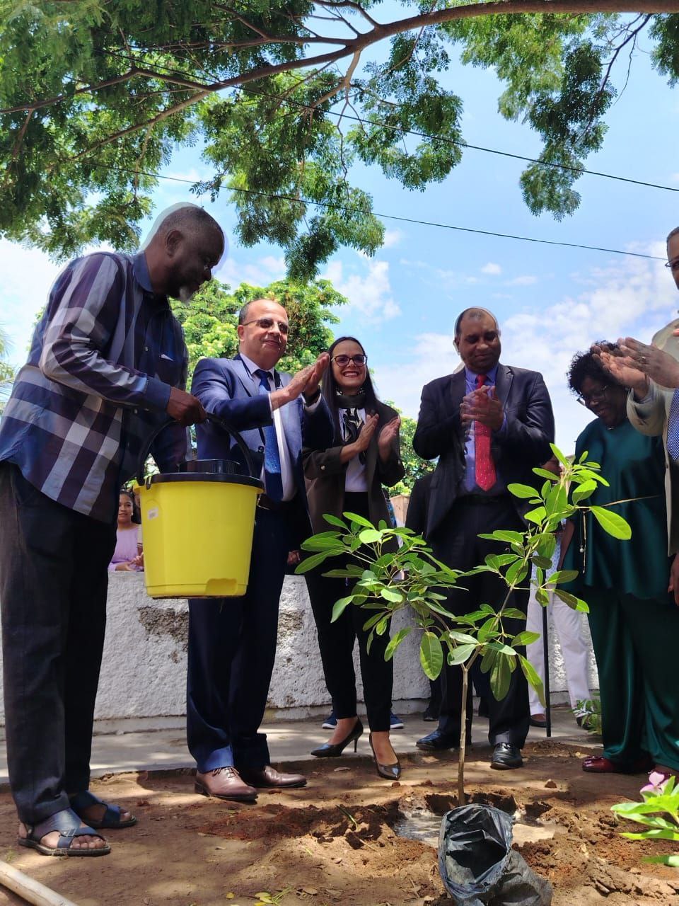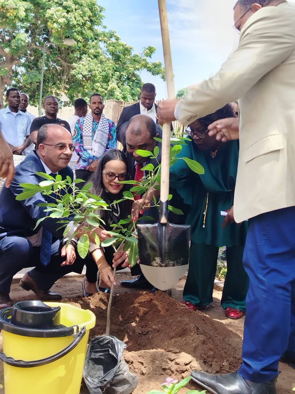 El acto contó con la participación de la embajadora de Venezuela, Belén Orsini Pic, quien, junto a sus homólogos de Palestina, Jubrael Bishara, y Cuba, Oscar León, realizó la siembra del Árbol de la Paz, acompañada por Elisa Salvador y Fernando de Matos, presidenta y primer vicepresidente, respectivamente, de la LAASP; el viceadministrador adjunto para el área Técnica, de Infraestructuras y Servicios Comunitarios del municipio Ingombota, Cláudio Emanuel Revelas, y un representante del Ministerio de Ambiente de Angola.