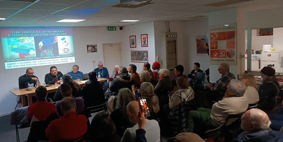 El pasado sábado, en la ciudad de Milán – Italia, en la Casa Rossa, grupos de solidaridad hicieron acto de presencia para la iniciativa “Cuba, Venezuela y América Latina frente a la Agresión Norteamericana”, acto organizado por el Comité contra la Guerra de Milán, en el que alzaron la voz en apoyo al Gobierno Bolivariano.