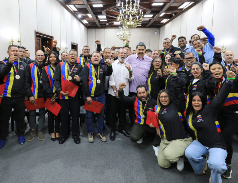 Palacio de Miraflores, Caracas.- Este viernes, en el Palacio de Miraflores, se condecoró a la Brigada Internacional Cuba-Venezuela con la Orden al Mérito Constructores y Constructoras de la Patria «Antonio José de Sucre» por el presidente de la República Bolivariana de Venezuela, Nicolás Maduro Moros, ante su destacada labor durante el paso devastador del huracán Melissa.