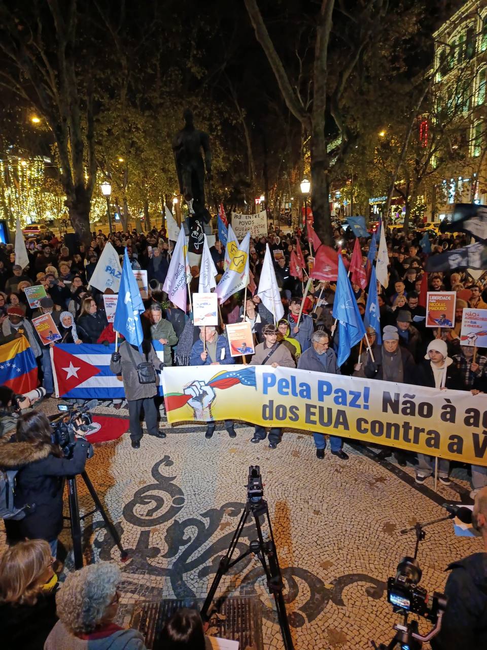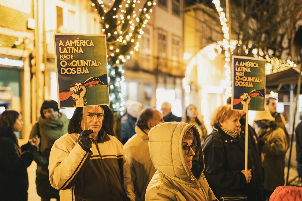 Lisboa, 5 de enero de 2026.- Este lunes se desplegó una multitudinaria muestra de solidaridad internacional en tres ciudades de Portugal: Lisboa, Oporto y Braga, para condenar la agresión militar de Estados Unidos (EEUU) contra Venezuela y el secuestro del Presidente Constitucional Nicolás Maduro Moros y de la primera dama, Cilia Flores.