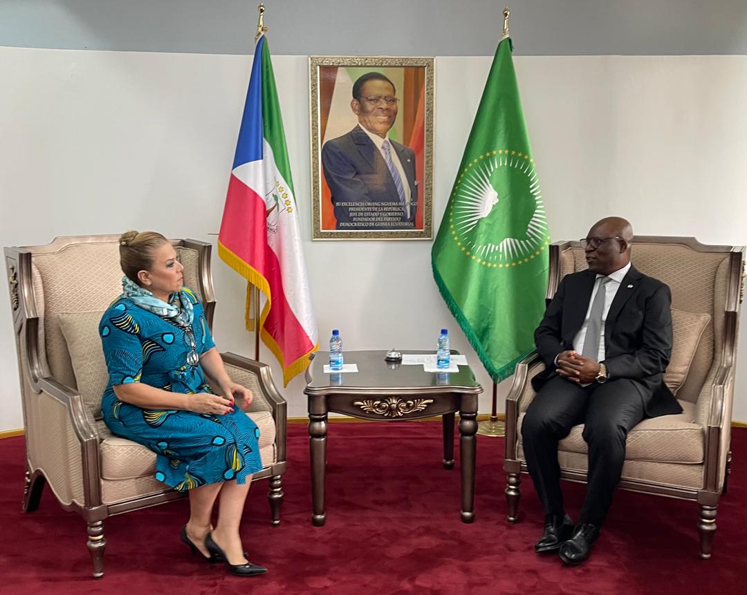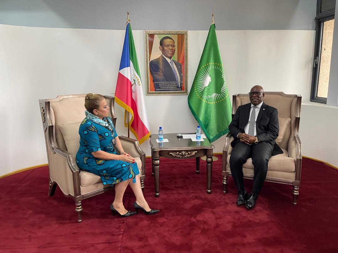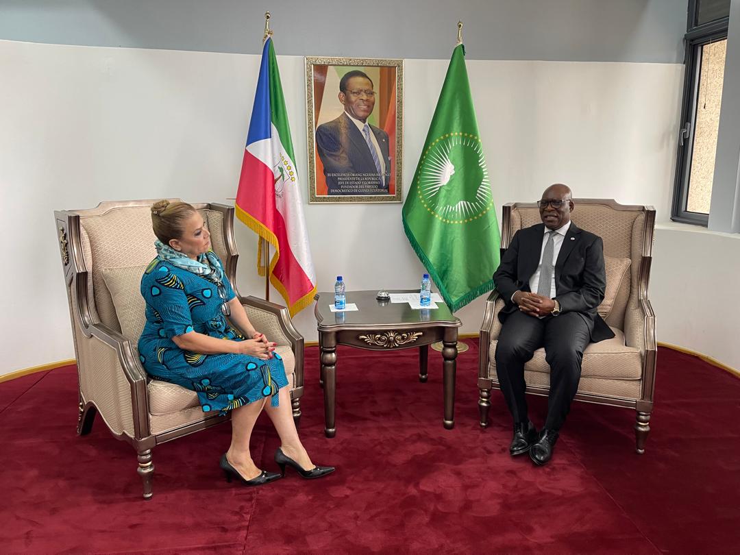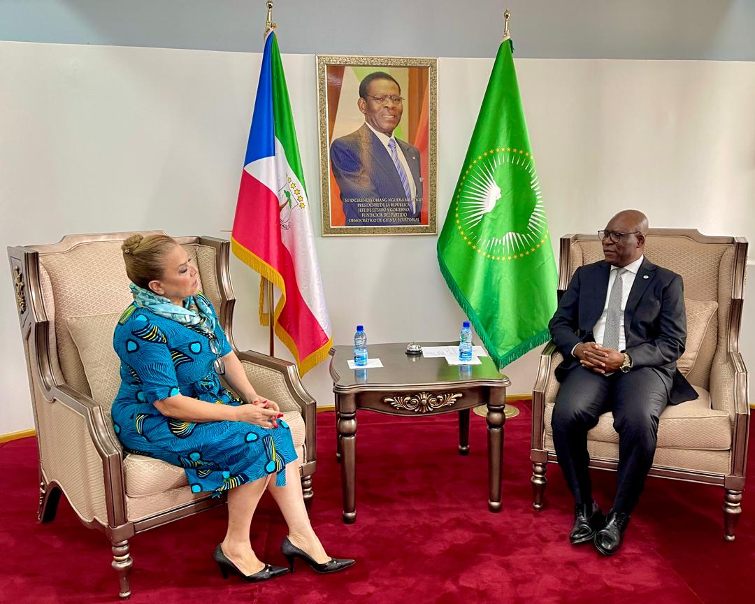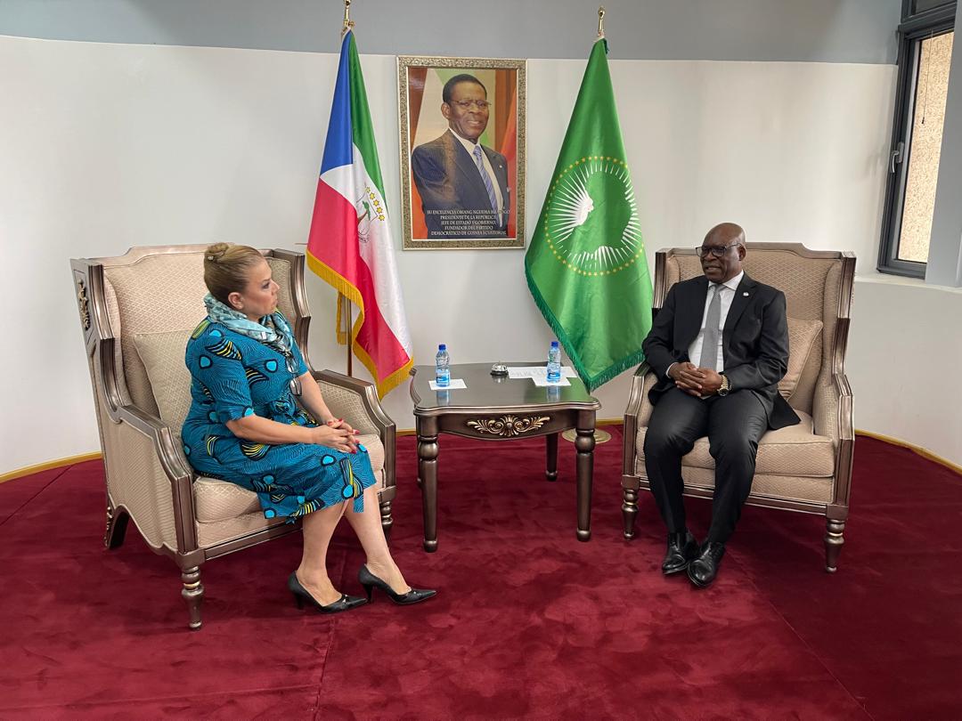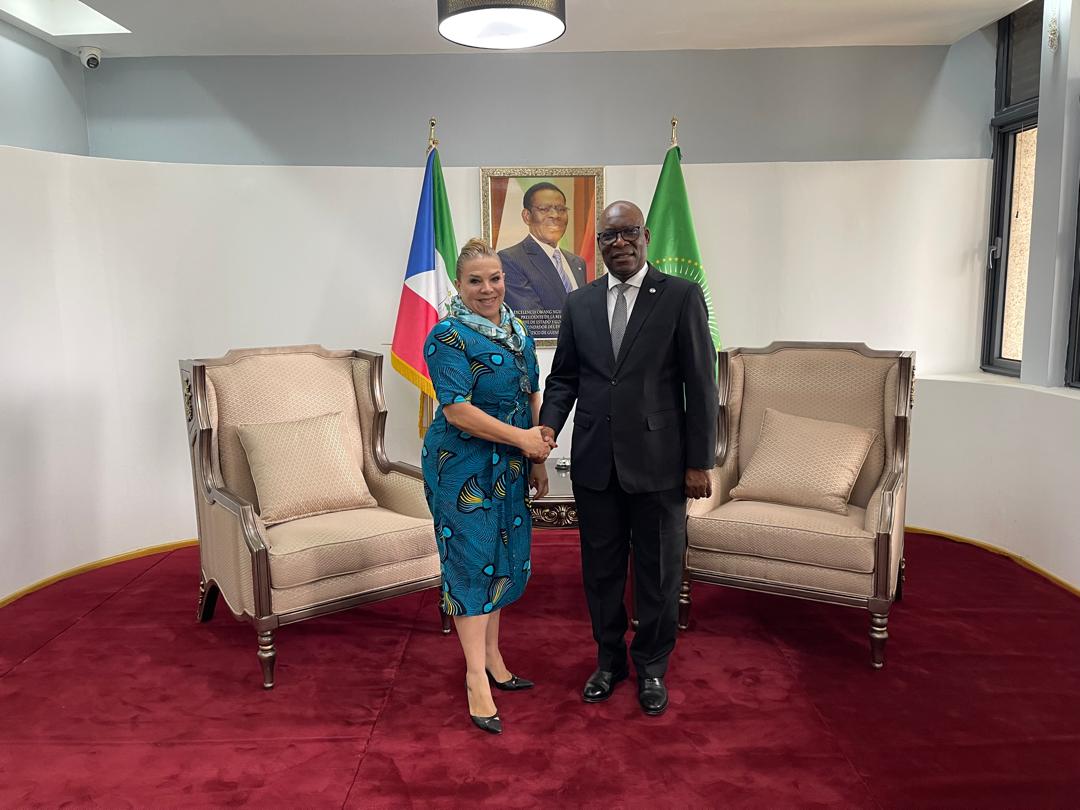 Malabo, 14 de enero de 2026.- La embajadora de la República Bolivariana de Venezuela en Guinea Ecuatorial, Ana Pino Pasquier, sostuvo un encuentro oficial con el ministro de Asuntos Exteriores, Cooperación Internacional y Diáspora del país africano, Simeón Oyono Esono Angue, en la sede ministerial en Malabo.