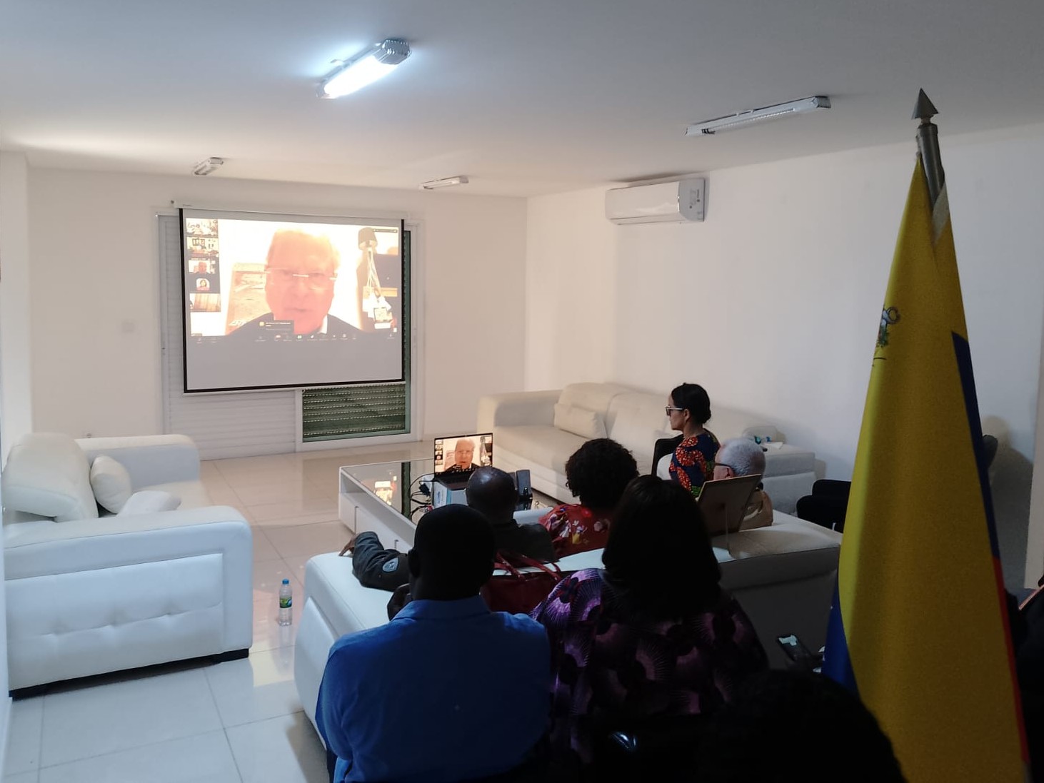 Posteriormente, reunidos en la Embajada de la República Bolivariana de Venezuela en Luanda, la embajadora Belen Orsini agradeció la solidaridad y expuso la verdad de su país, informando que el pueblo se mantiene movilizado en defensa de su soberanía, su presidente y a nivel internacional, en el camino diplomático en estricto apego al Derecho Internacional, la Doctrina Bolivariana de Paz y en apoyo a la presidenta encargada Delcy Rodríguez.