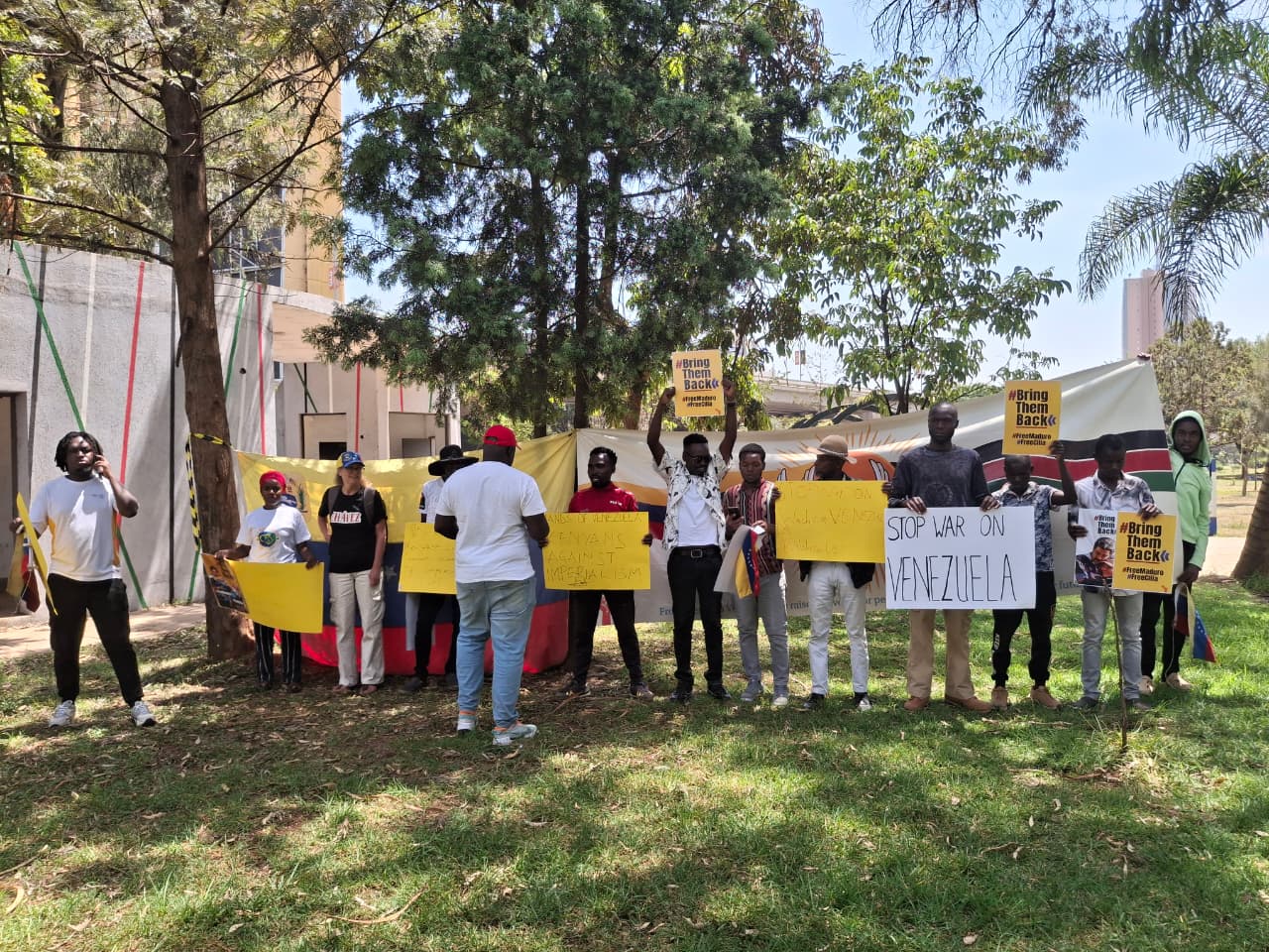Nairobi, 24 de enero de 2026.- En los jardines del Parque Uhuru, ubicado en el corazón de la capital keniana, tuvo lugar una concentración de militantes de organizaciones sociales, con el objeto de exigir la inmediata liberación del Presidente de la República Bolivariana de Venezuela, Nicolás Maduro Moros, y su esposa, la primera combatiente y diputada, Cilia Flores.