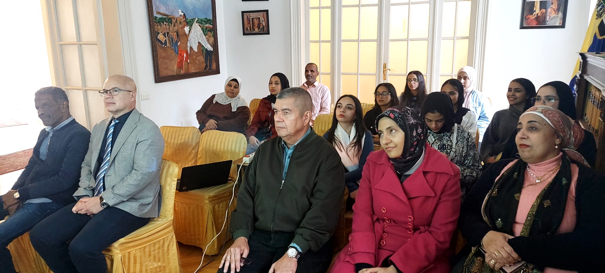 El Cairo, 1 de febrero de 2026 - La Embajada de la República Bolivariana de Venezuela en Egipto realizó una doble jornada de cine venezolano, en el marco de la conmemoración del Día del Cine Nacional. El evento contó con la participación de jóvenes egipcios alumnos universitarios de español, quienes se dieron cita en la Misión Diplomática para conocer más sobre la historia y la cultura venezolana a través del séptimo arte.
