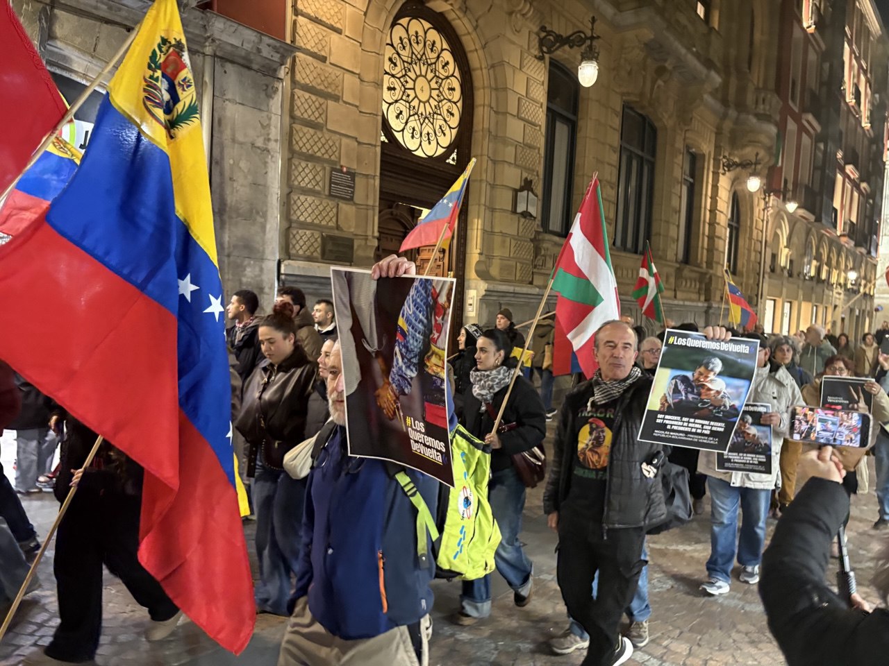 La primera actividad se realizó el martes 3 de febrero, en la Plaza Venezuela de la ciudad de Bilbao, convocada por el movimiento #BringThemBack de Euskal Herria, en el marco de las movilizaciones globales de solidaridad para exigir la liberación de la pareja presidencial.