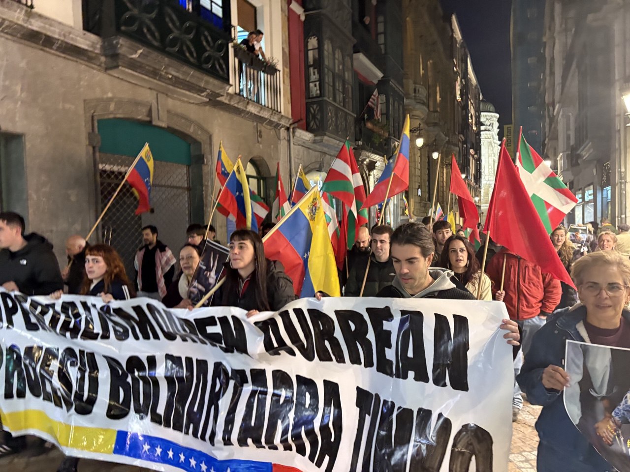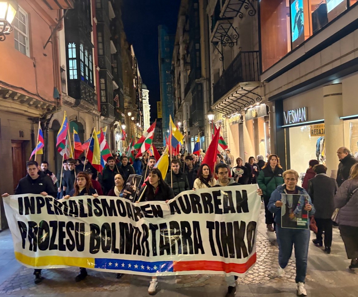 Todas las manifestaciones culminaron con la lectura de un Comunicado (en español y euskera), en el que se condena la agresión militar de EEUU el pasado 3 de enero; se exige la liberación inmediata del presidente Maduro y la primera dama Cilia Flores; se denuncia la estrategia neocolonial que pretende apropiarse de los recursos naturales que le pertenecen al pueblo venezolano, y se reafirma el inquebrantable apoyo a la Revolución Bolivariana.