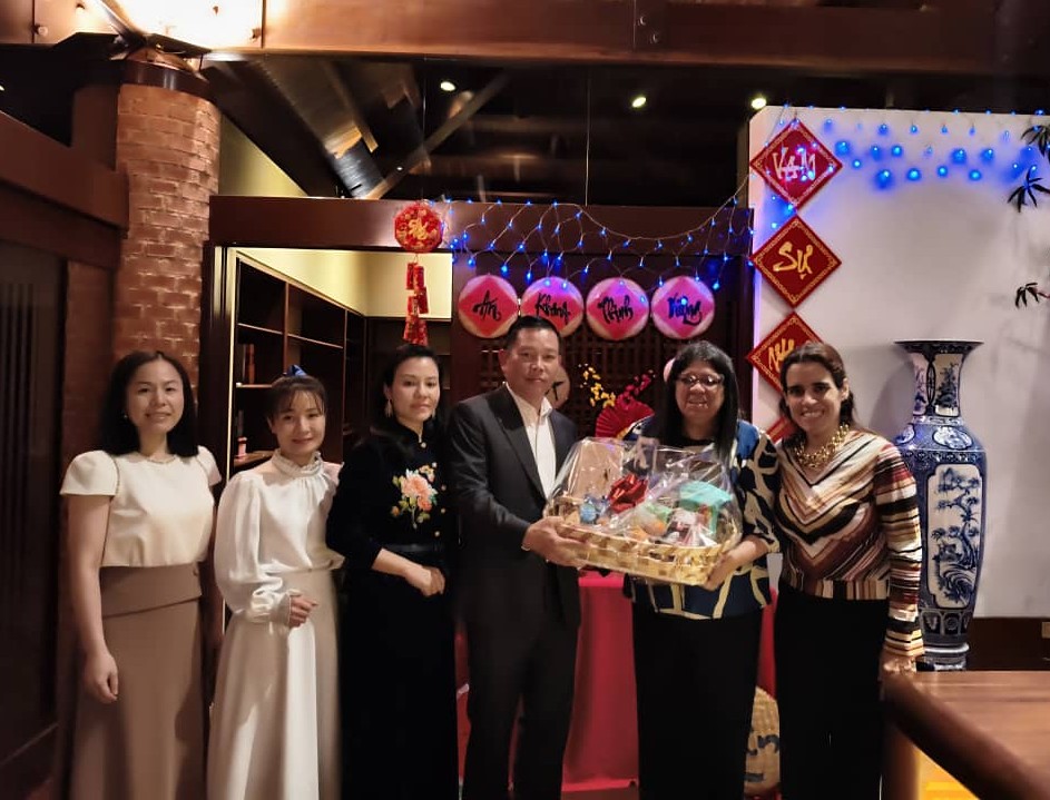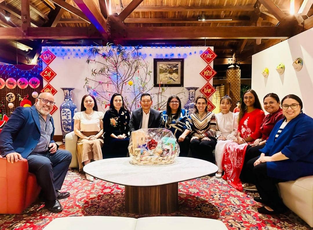 En un ambiente de profunda amistad y hermandad, en la sede de la Embajada de la República Socialista de Vietnam en Caracas, el embajador Vu Trung My recibió a la viceministra para Asia, Medio Oriente y Oceanía del Ministerio del Poder Popular para Relaciones Exteriores, Tatiana Pugh, con motivo de la conmemoración del Año Nuevo Vietnamita (Tet Nguyen Dan).