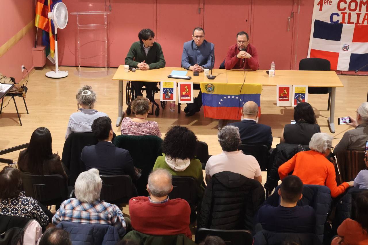 Durante la actividad, el diplomático venezolano compartió con los frentes populares los hechos ocurridos el pasado 3 de enero, cuando una agresión militar estadounidense secuestró al presidente Nicolás Maduro y a la diputada Cilia Flores.