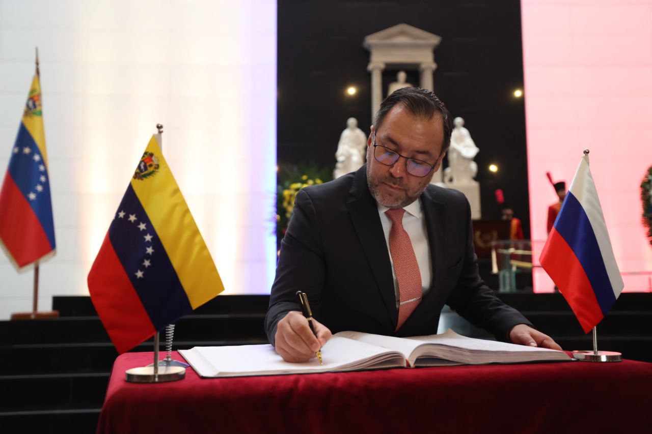 El ministro del Poder Popular para Relaciones Exteriores de la República Bolivariana de Venezuela, Yván Gil, y el embajador de la Federación de Rusia acreditado en Caracas, Sergey Mélik-Bagdasárov, ofrendaron este lunes al Libertador Simón Bolívar en el Panteón Nacional, con motivo del 81 aniversario del establecimiento de las relaciones diplomáticas entre ambos países, que ocurrió el 14 de marzo de 1945.