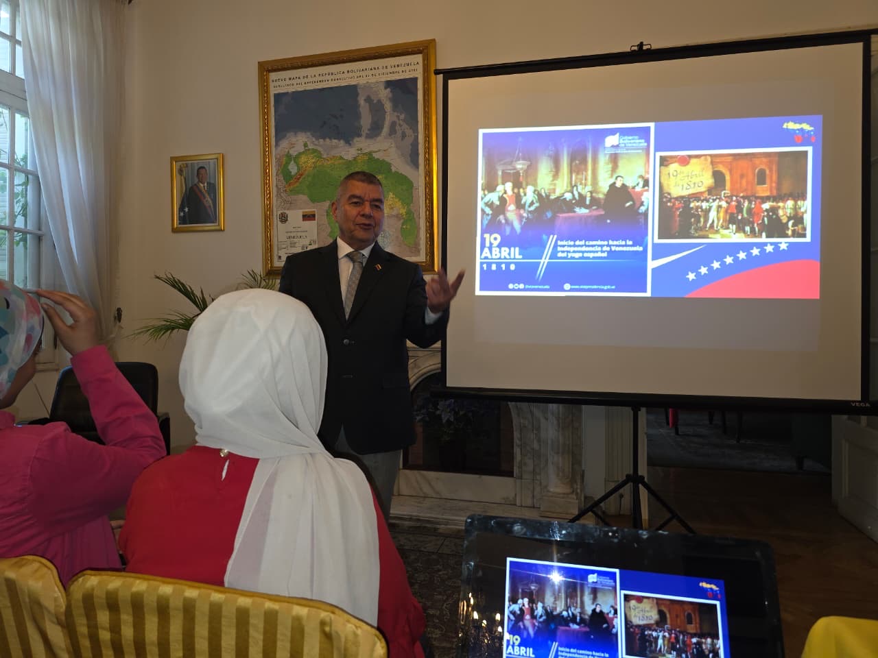 Durante la jornada, el embajador de Venezuela en Egipto, Wilmer Omar Barrientos, explicó detalladamente el significado del 19 de Abril de 1810, fecha en la que el pueblo venezolano dio el primer paso formal hacia su independencia del colonialismo español.